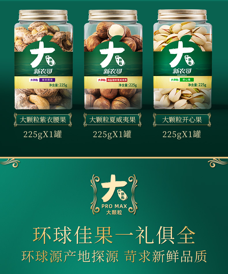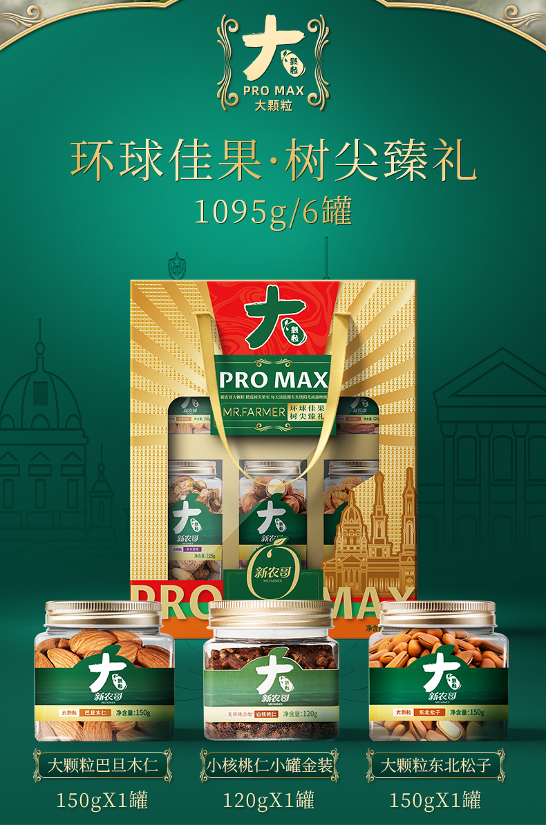 新农哥PROMAX大颗粒坚果礼盒高端1095g/6罐环球树尖铭果