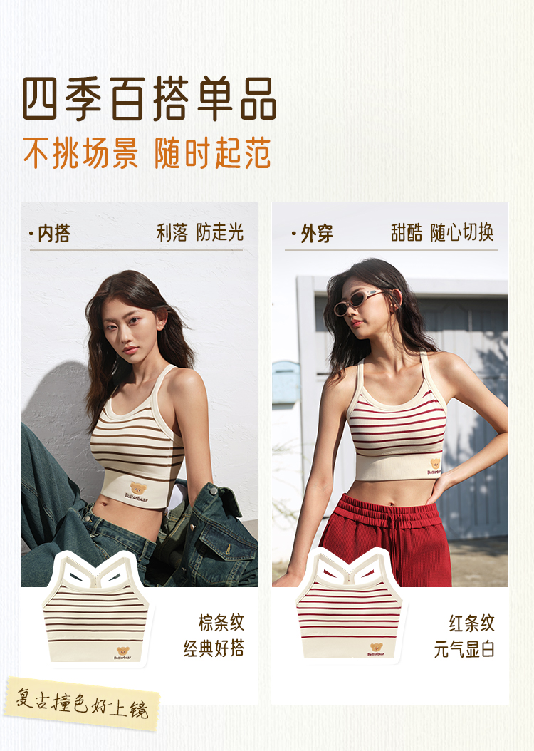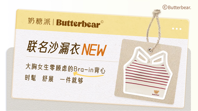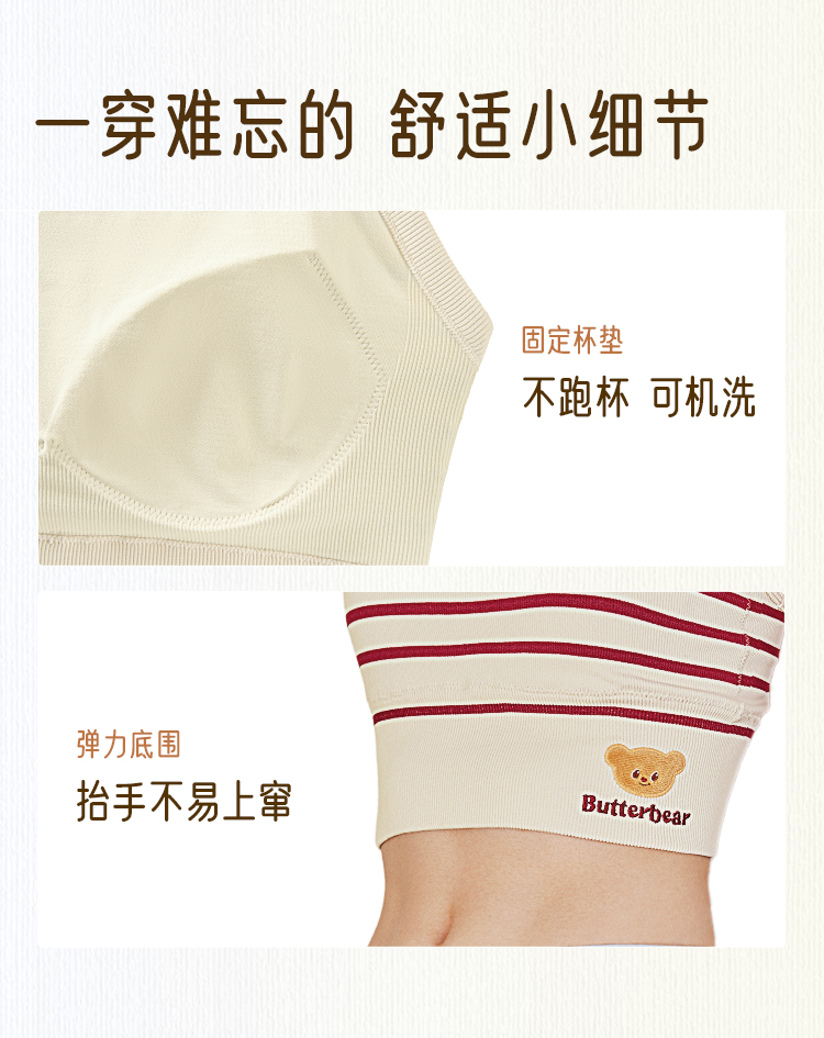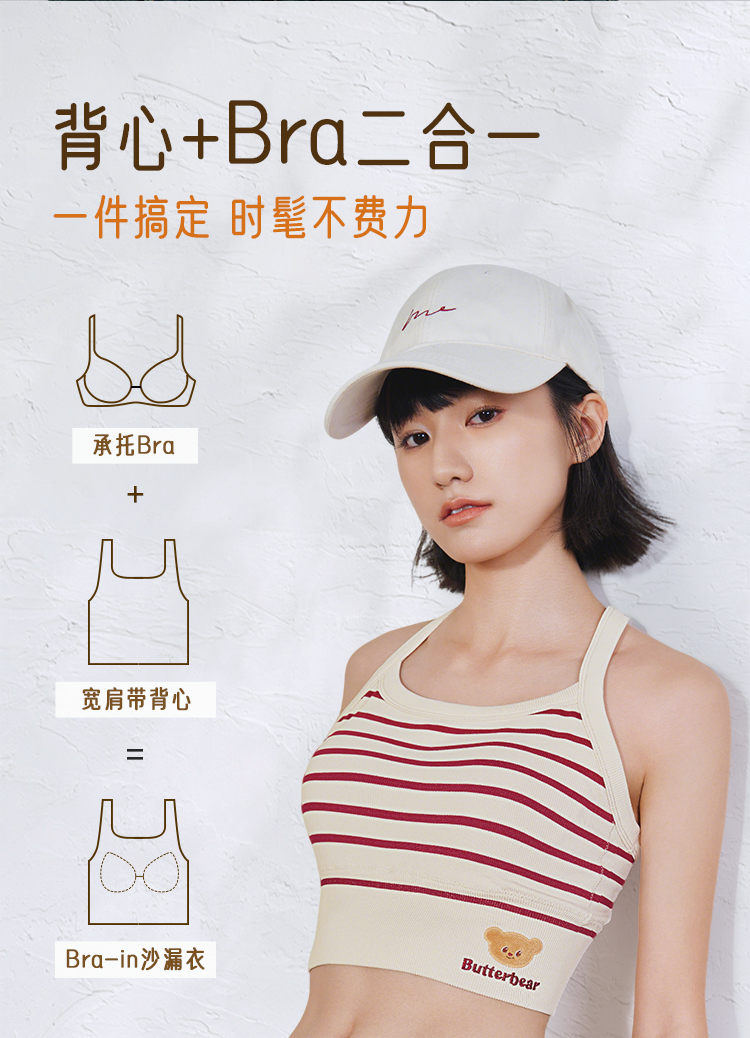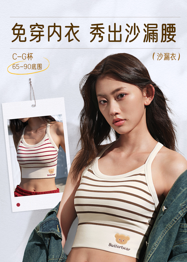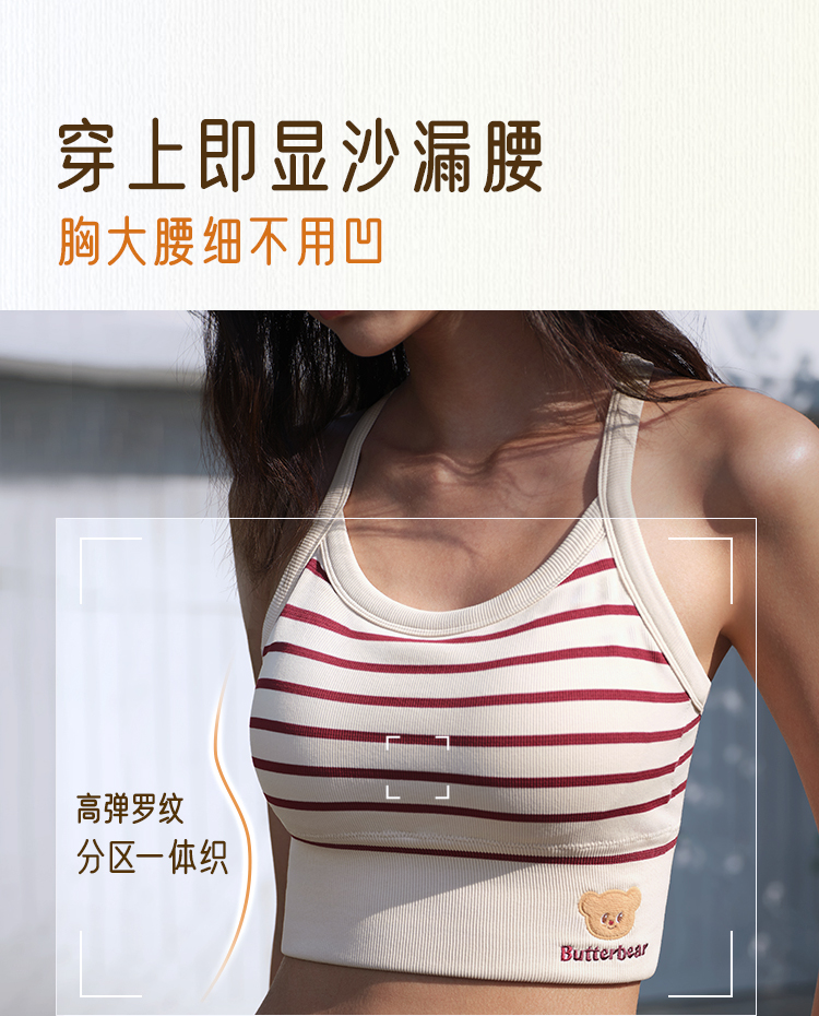 奶糖派黄油小熊沙漏衣带胸垫背心女可外穿一体式大胸运动内衣美背