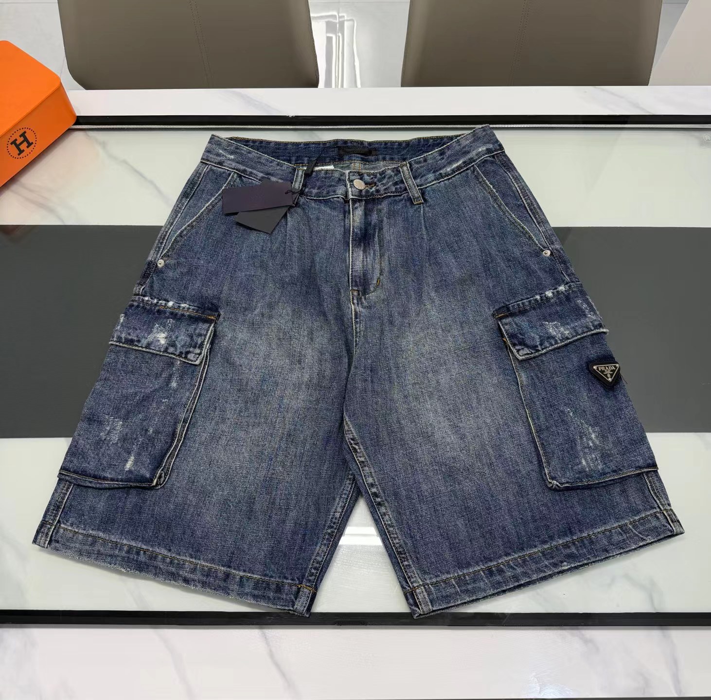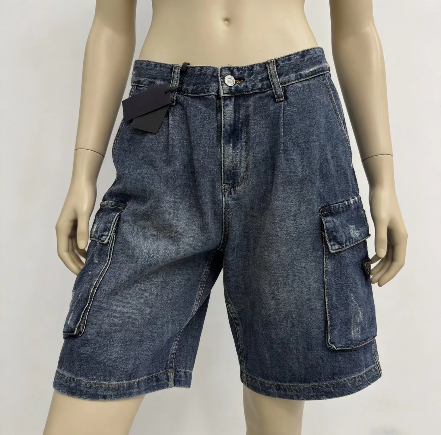 新款拼接口袋军工牛仔男士短裤网红ming星同款定制过水洗毛圈面料 chao级百搭好看的一款短裤人手bi备款 情侣款