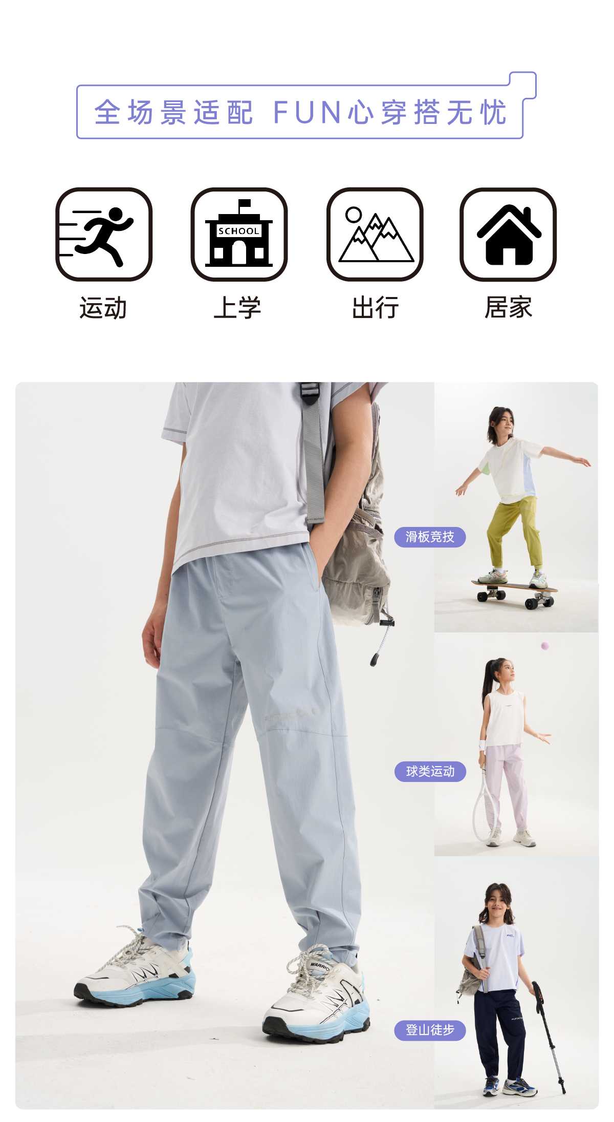 【轻肤裤束脚版 】funactive男童裤子儿童户外运动工装裤F1UK30334
