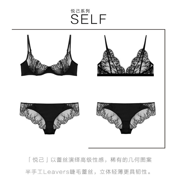Her Senses|悦己 01-B009-NN 睫毛蕾丝无钢圈三角杯 [ 黑 / 白 ]