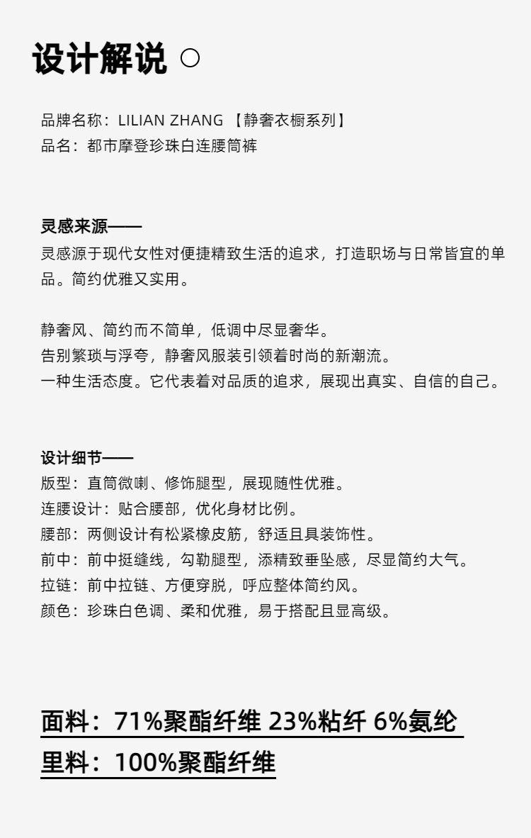 E“定制”——静奢风 ——都市摩登——风尚之选——珍珠白连腰筒裤 2404008