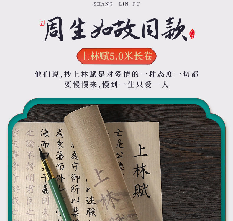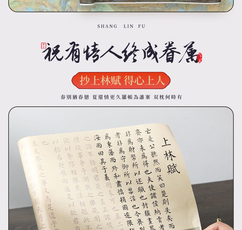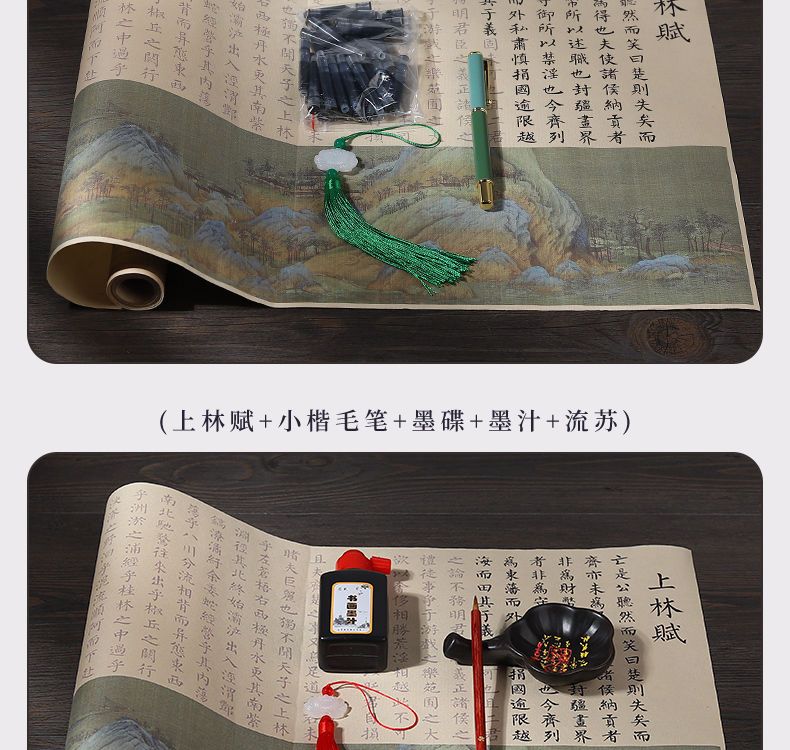 【41件套 上林赋1+笔1+流苏1+墨囊38】精装彩图上林赋礼盒全篇5m套装练字帖描红字帖小楷正楷钢笔式毛笔