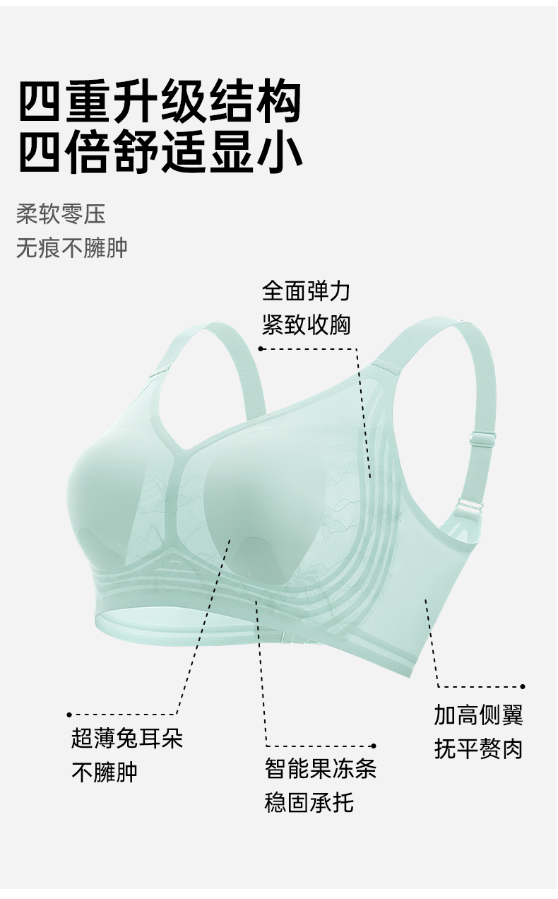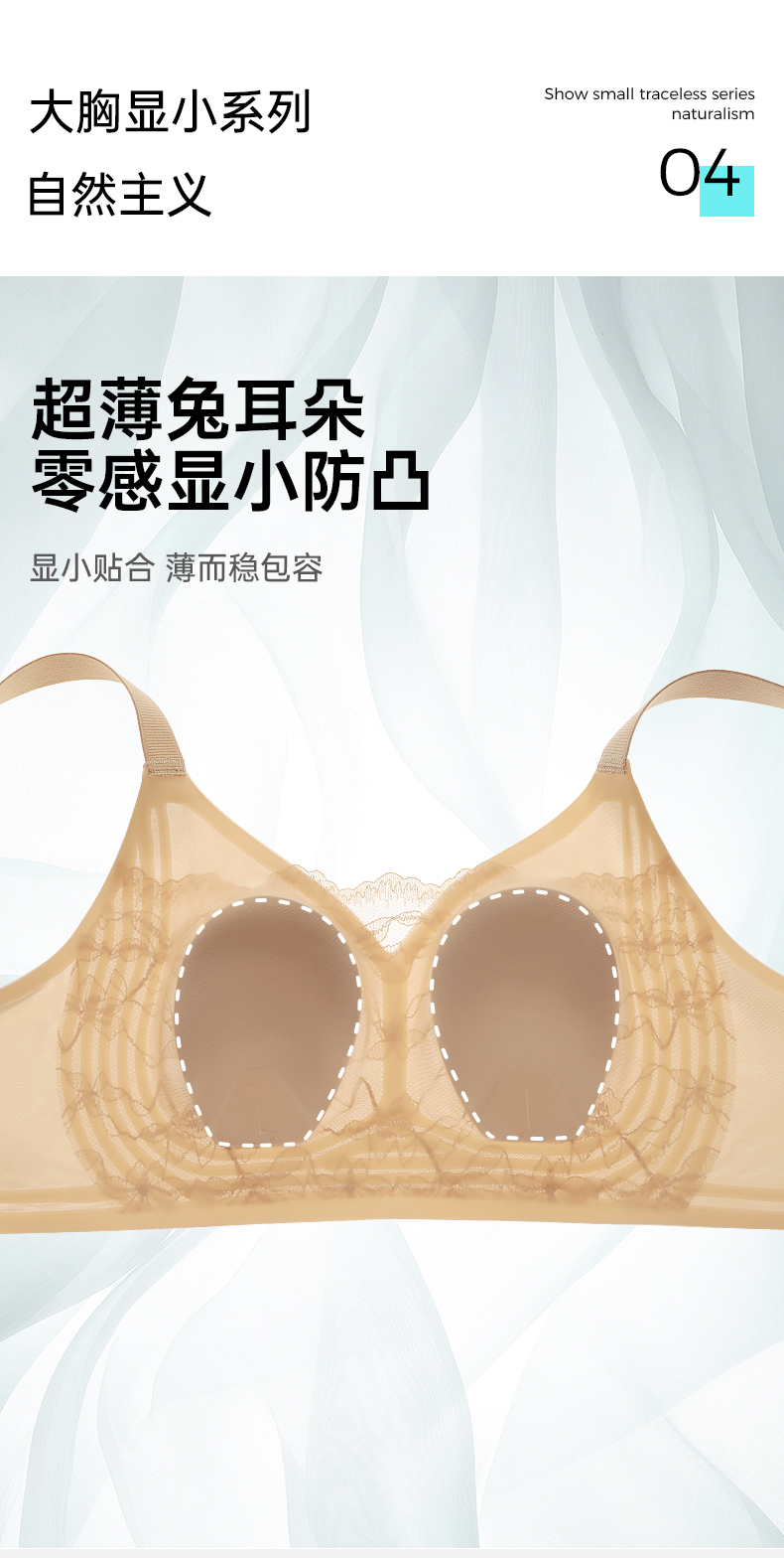 【70B-D杯】【大胸显小 兔耳杯】夏季花漾清凉面料、环绕式果冻条稳固承托 花漾兔兔【大胸-蕾丝】