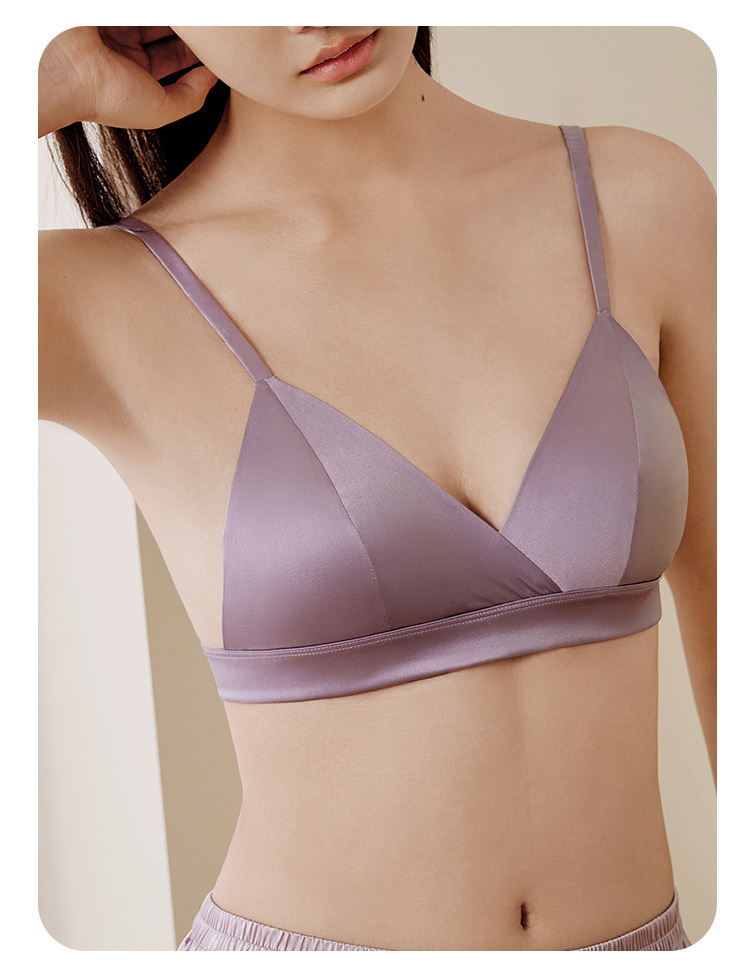 金三塔里外桑蚕丝缎面文胸法式三角杯深V聚拢无钢圈舒适性感内衣 NZFFC301