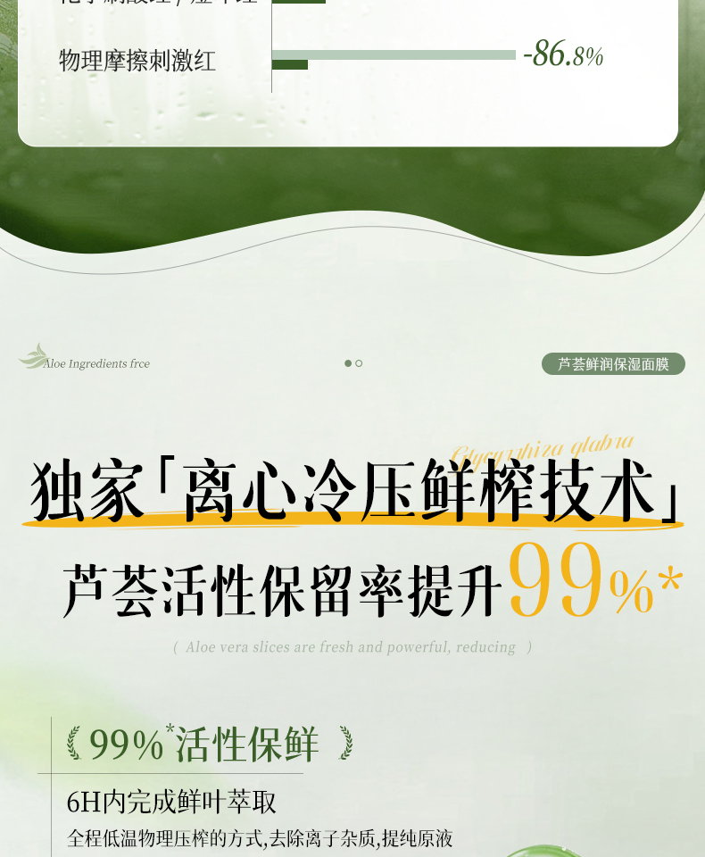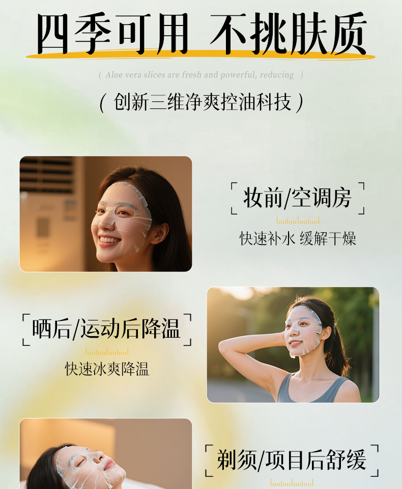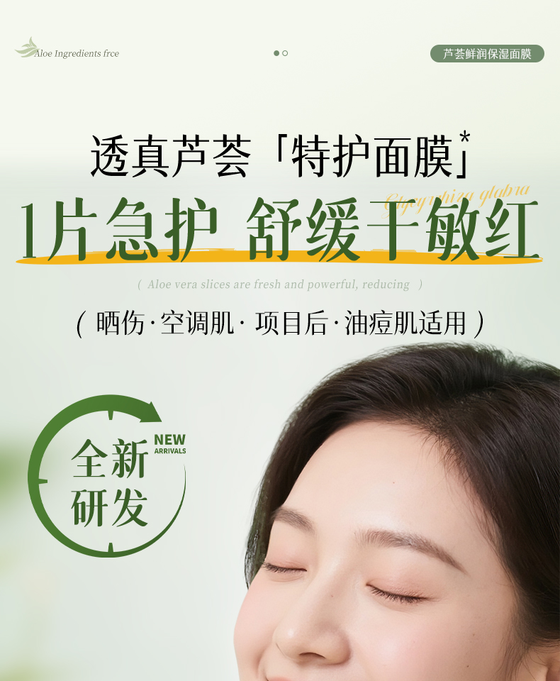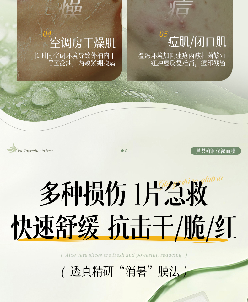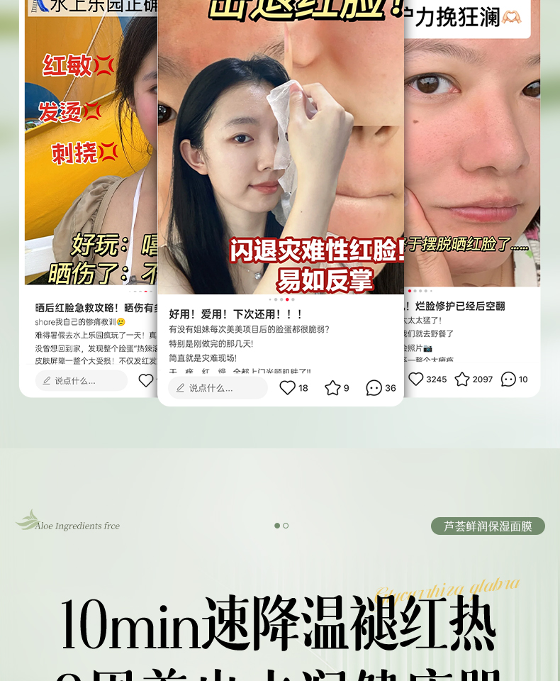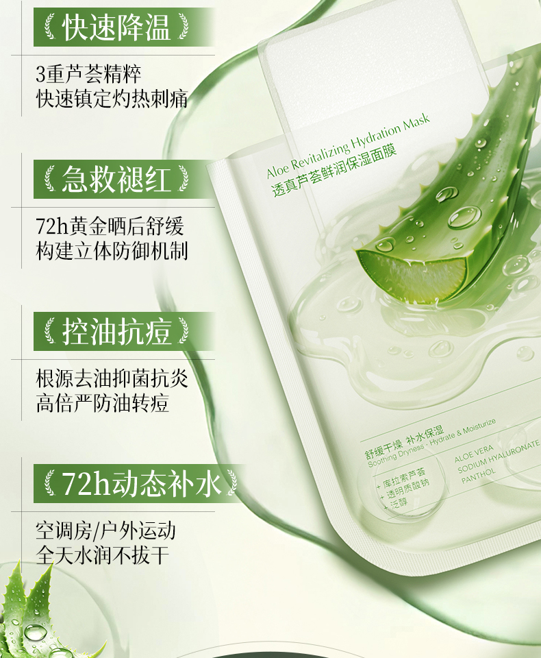 【晒伤修复+补水】芦荟晒后修护面膜b5修复补水舒缓保湿祛痘淡痘印收缩毛孔男女正品