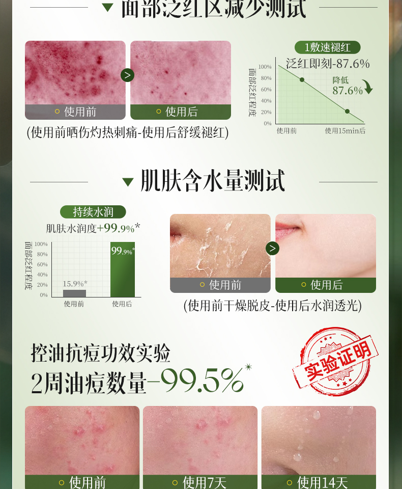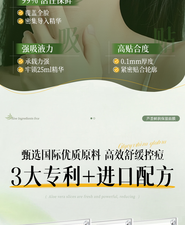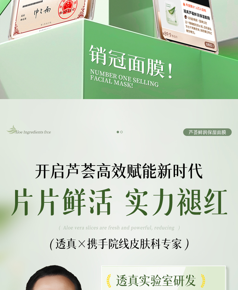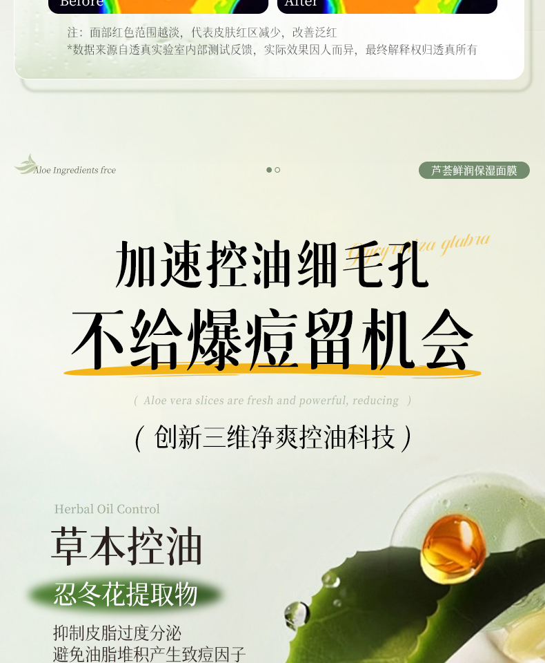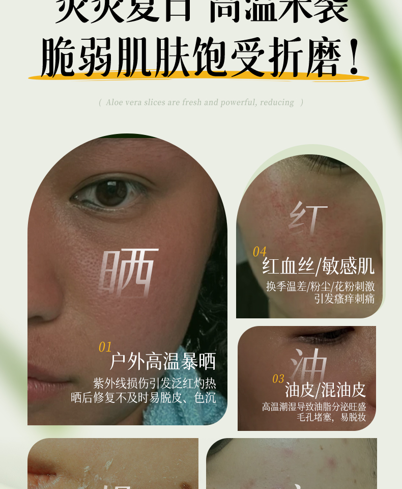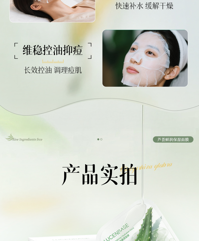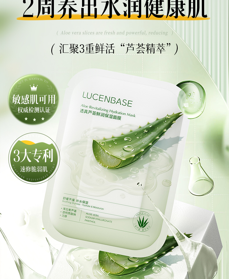 【晒伤修复+补水】芦荟晒后修护面膜b5修复补水舒缓保湿祛痘淡痘印收缩毛孔男女正品