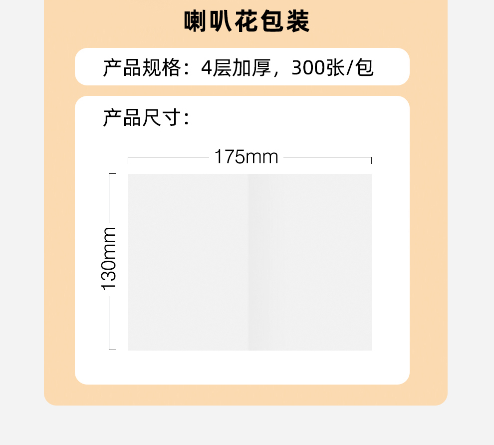 喇叭花300张抽纸餐巾纸家用实惠装卫生纸巾擦手纸面巾纸商用四层