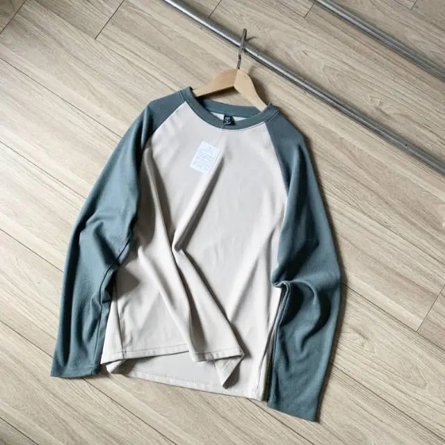 情侣抓绒衣针织衫保暖磨毛拼色长袖T恤