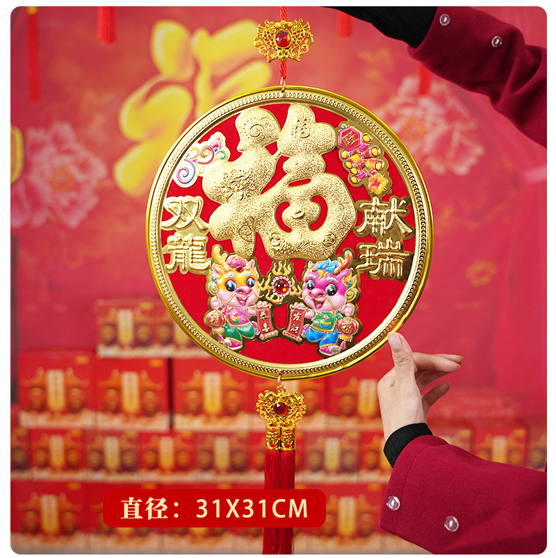 【双蛇戏珠❗️福字双蛇3D立体挂件】福字中国结挂件客厅电视背景墙乔迁新居春节装饰新年入户门挂饰