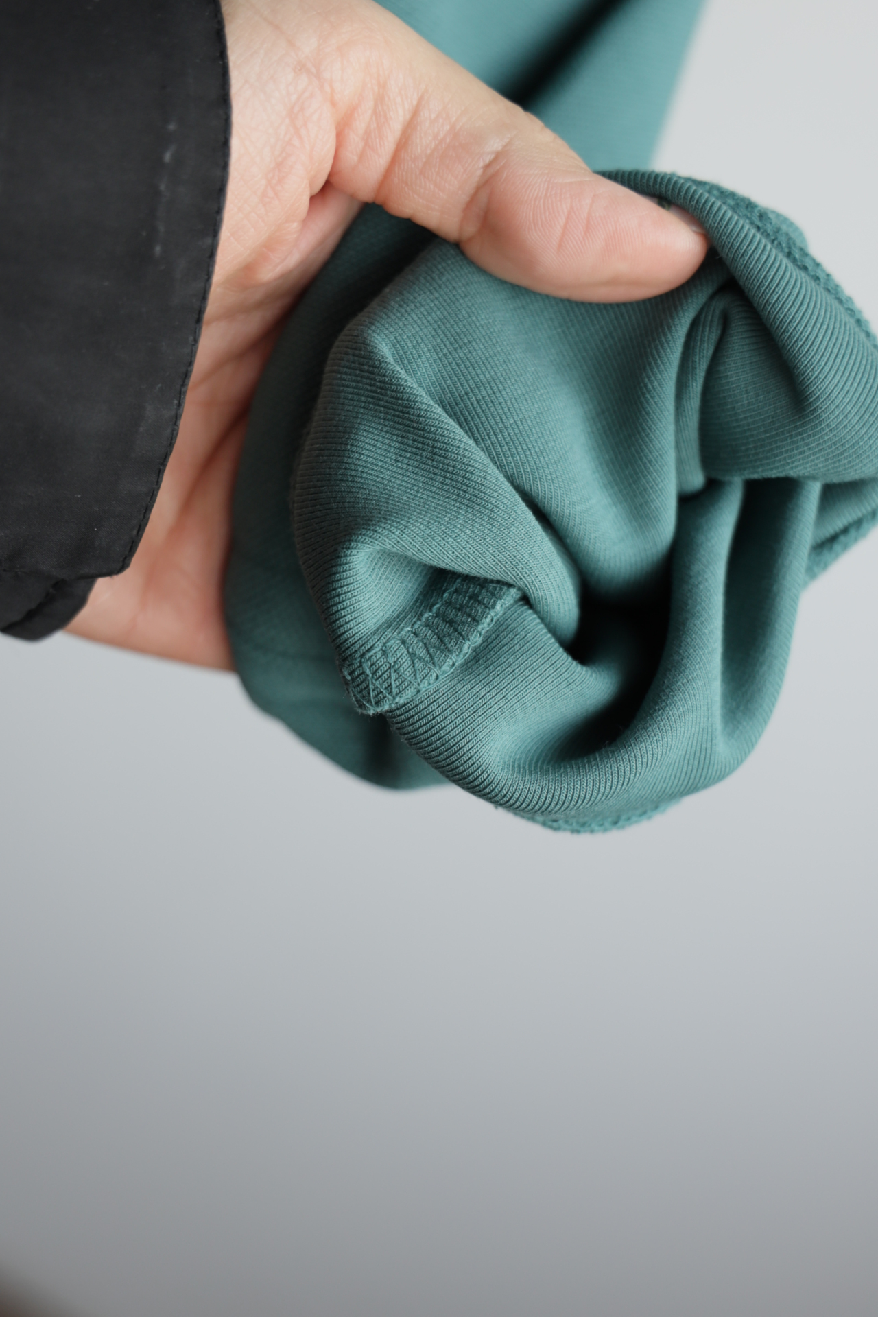 略带弹性的双面针织,外层网纹,内里平纹,手感细腻舒适