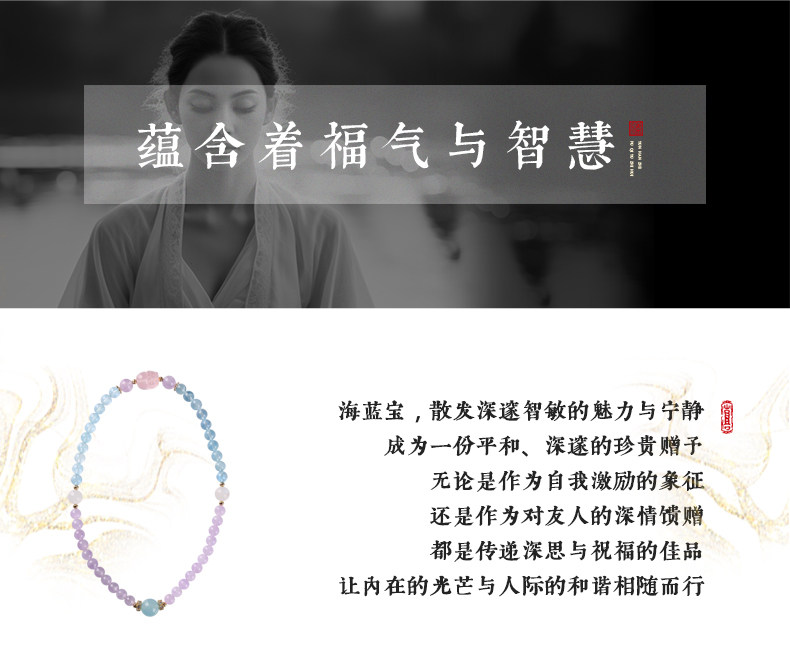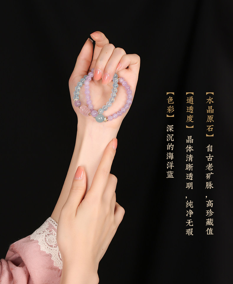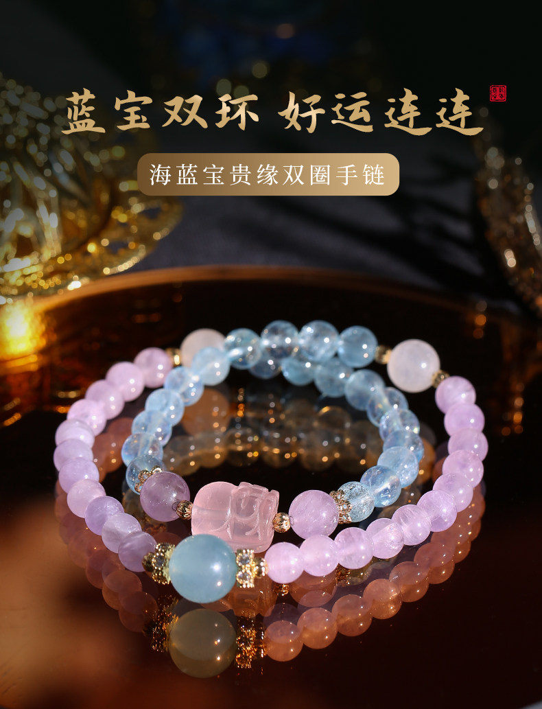 【祈愿吉品】海蓝宝贵缘相助双圈手链紫水晶貔貅手串