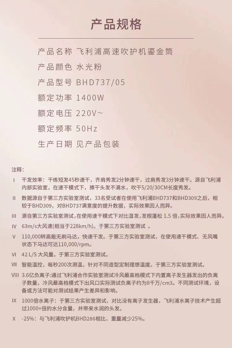 【春上新】10楼飞利浦高速电吹风机家用负离子护发大风力速干风筒BHD737吊牌价1599元活动价1399元