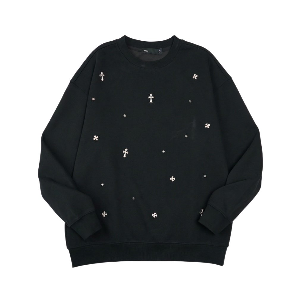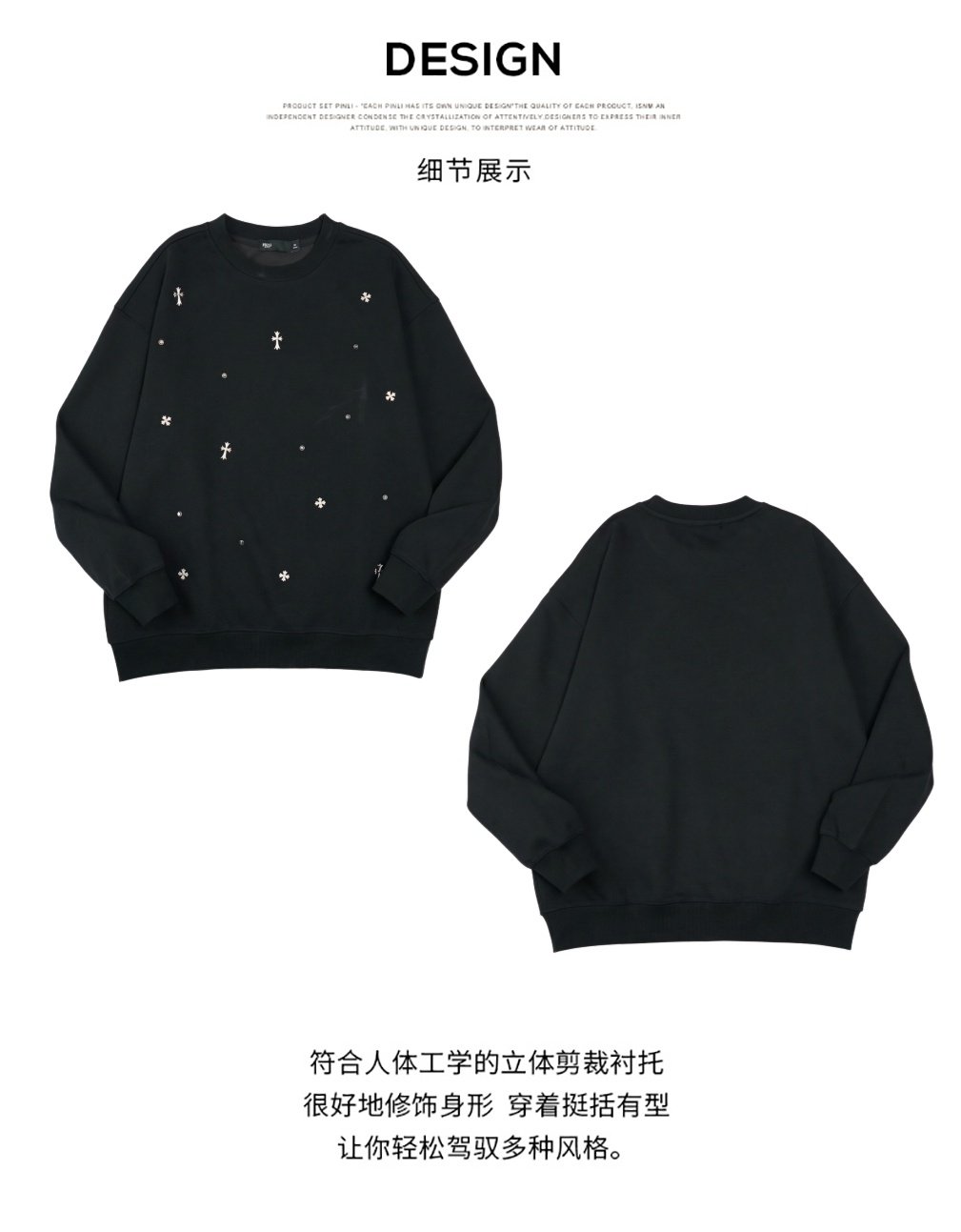 PINLI品立2026春季新款男士宽松金属贴片圆领落肩套头休闲上衣上衣潮BG262109004