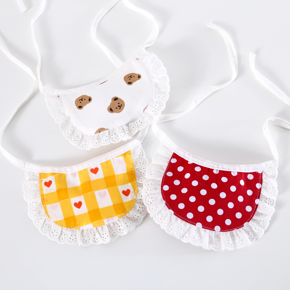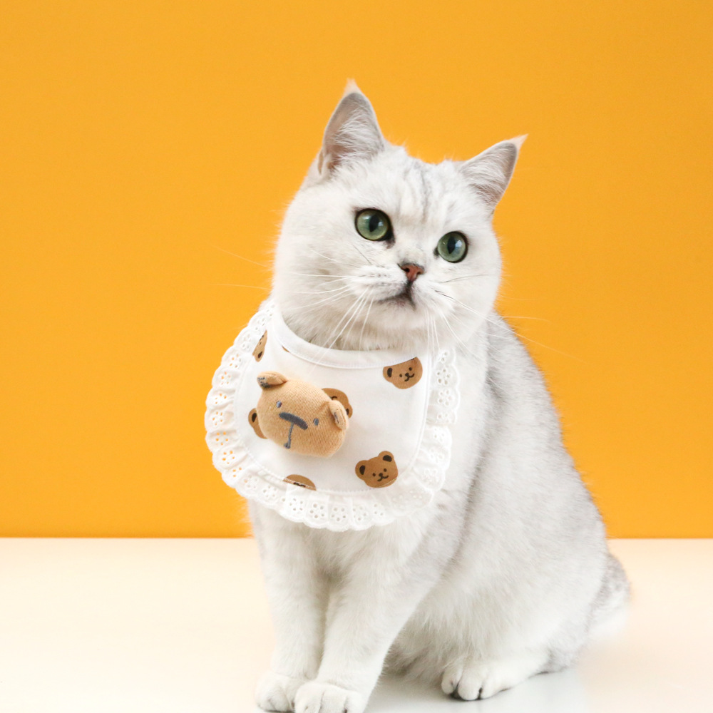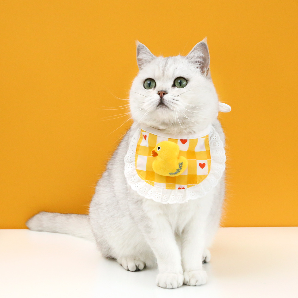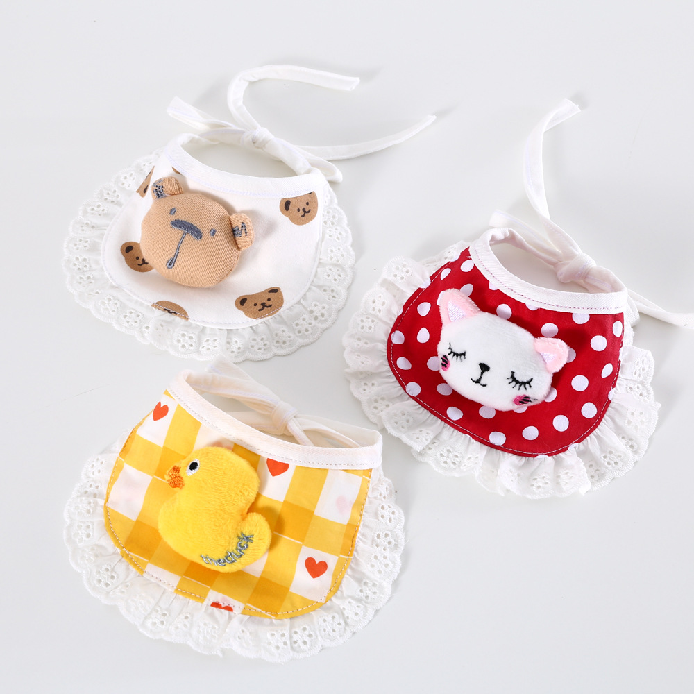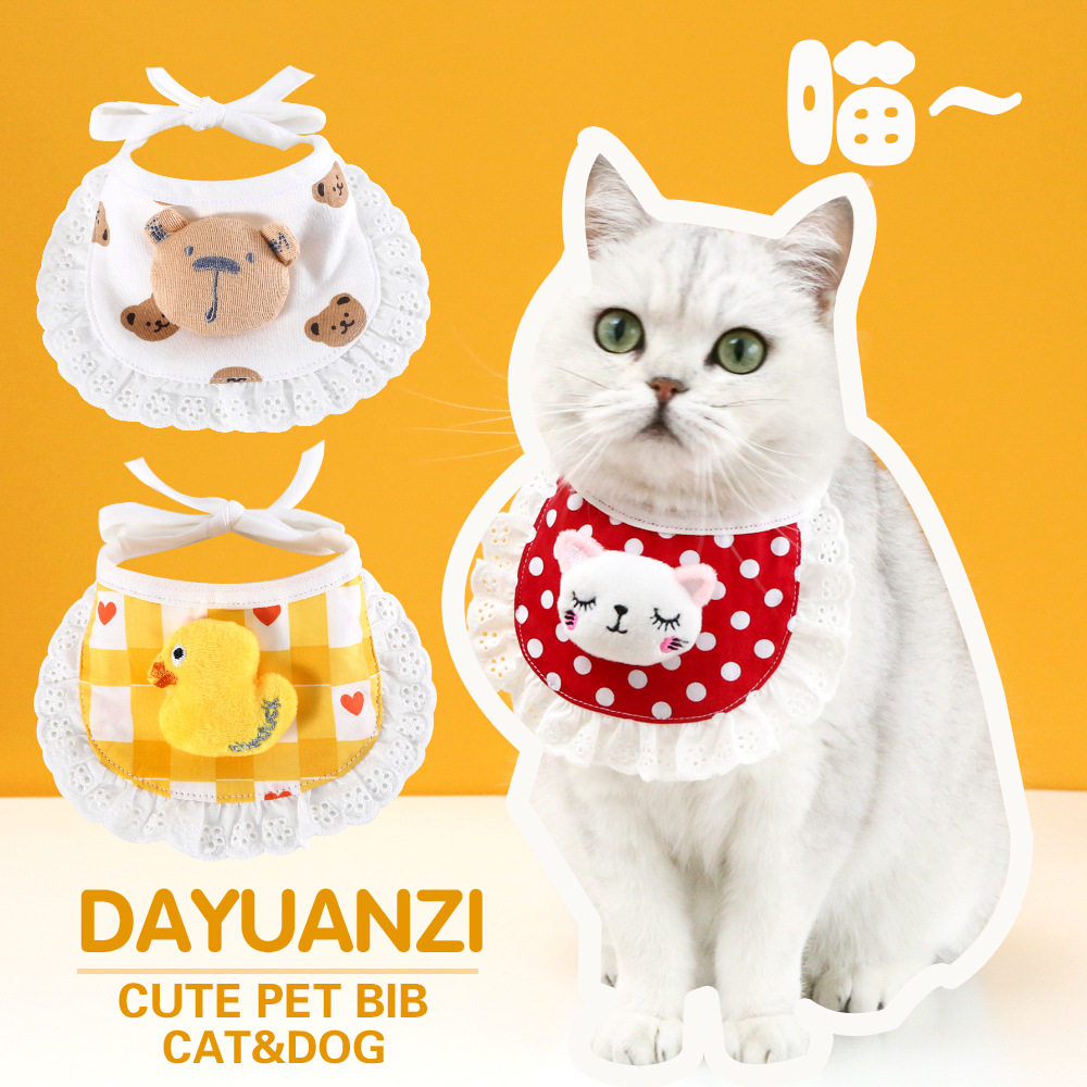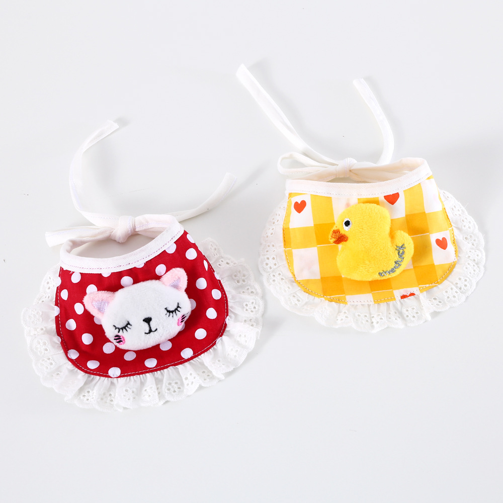 【双面设计 正反可戴】宠物猫咪小狗卡通波点格子花边熊小黄鸭围兜纯棉可爱口水巾项圈兔