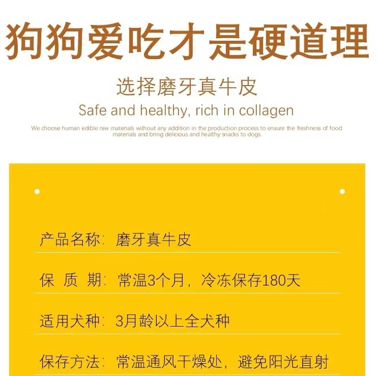 风干原切真牛皮狗狗磨牙洁齿训练咬胶奖励零食安全不伤胃100g(3根左右大大根)