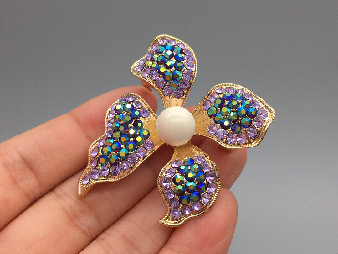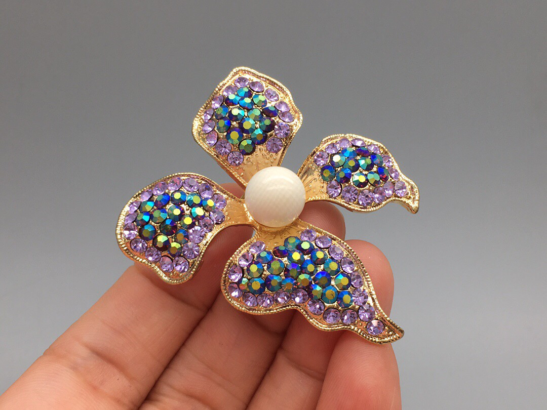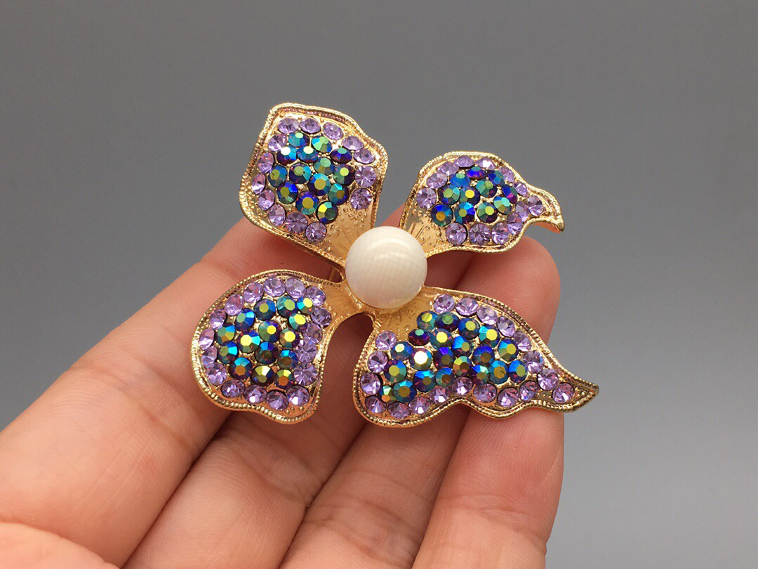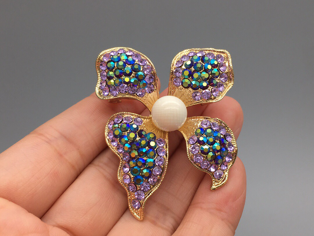 猛犸象牙港工圆珠镶嵌。蝴蝶花胸针。工艺精湛。珠直径约10mm