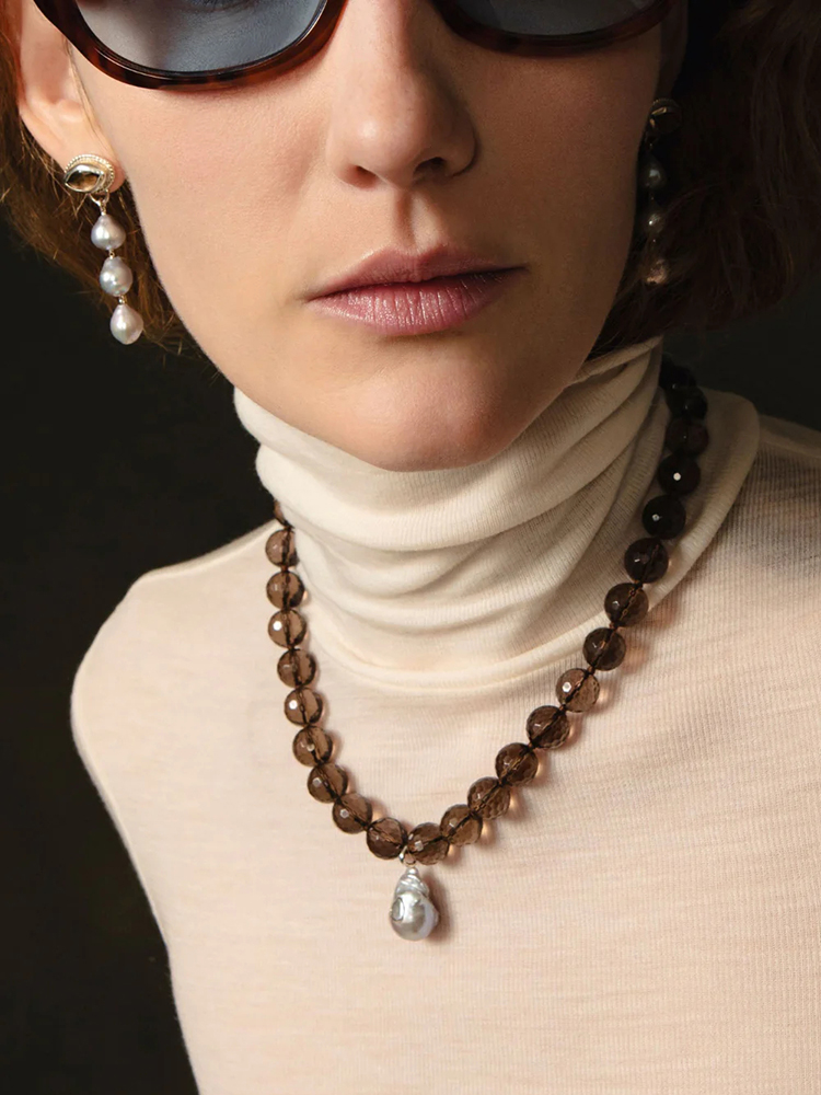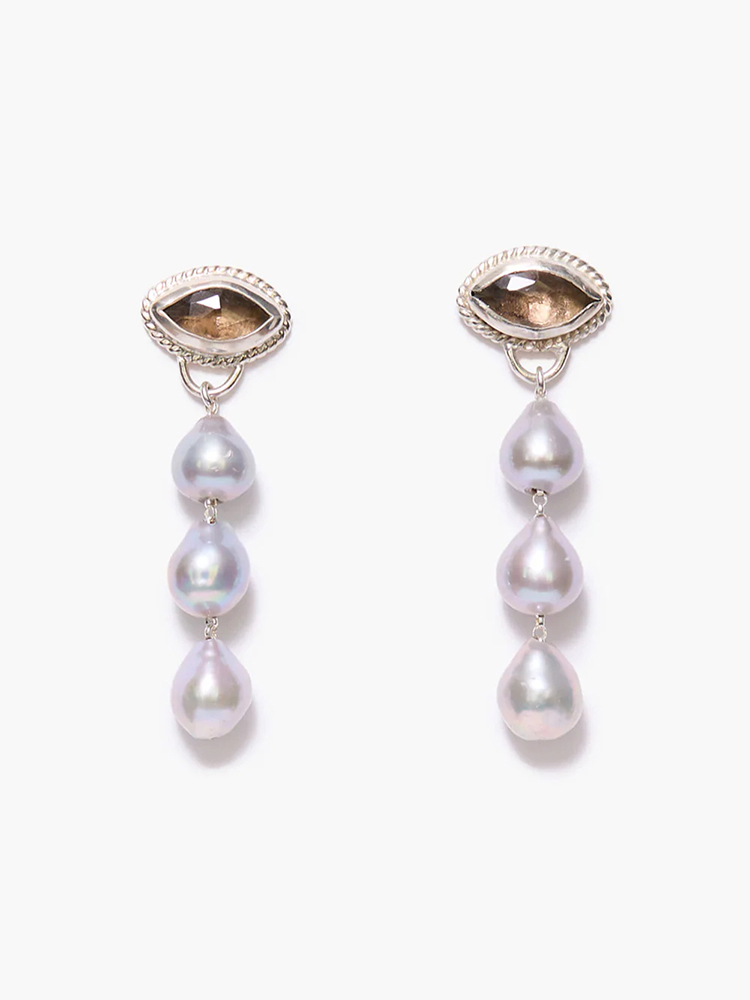 订购6周到|Chan Luu-GAZE-马眼形 烟晶 淡水珍珠 耳环[美国设计师]
