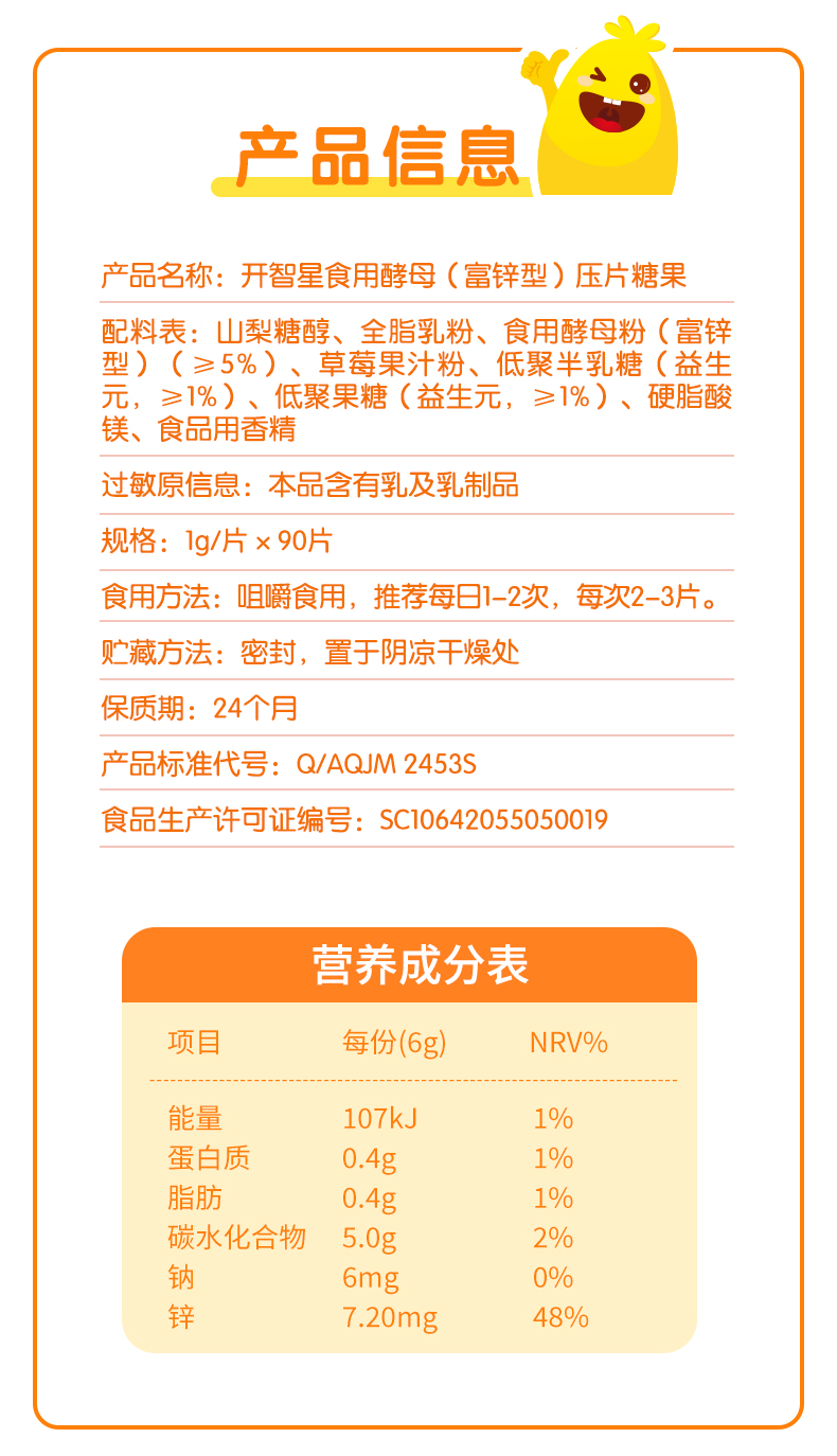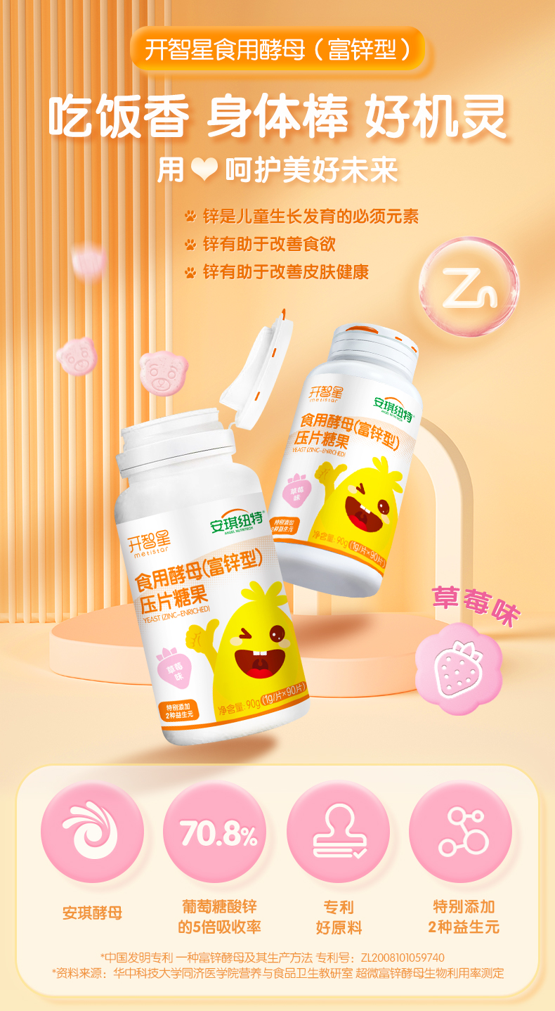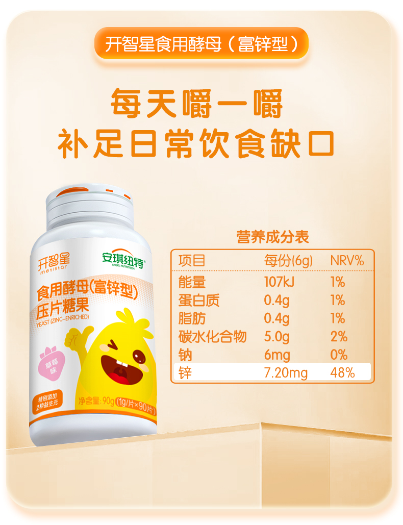 点赞优生活-开智星食用酵母(富锌型)压片糖果1g*90片/瓶
