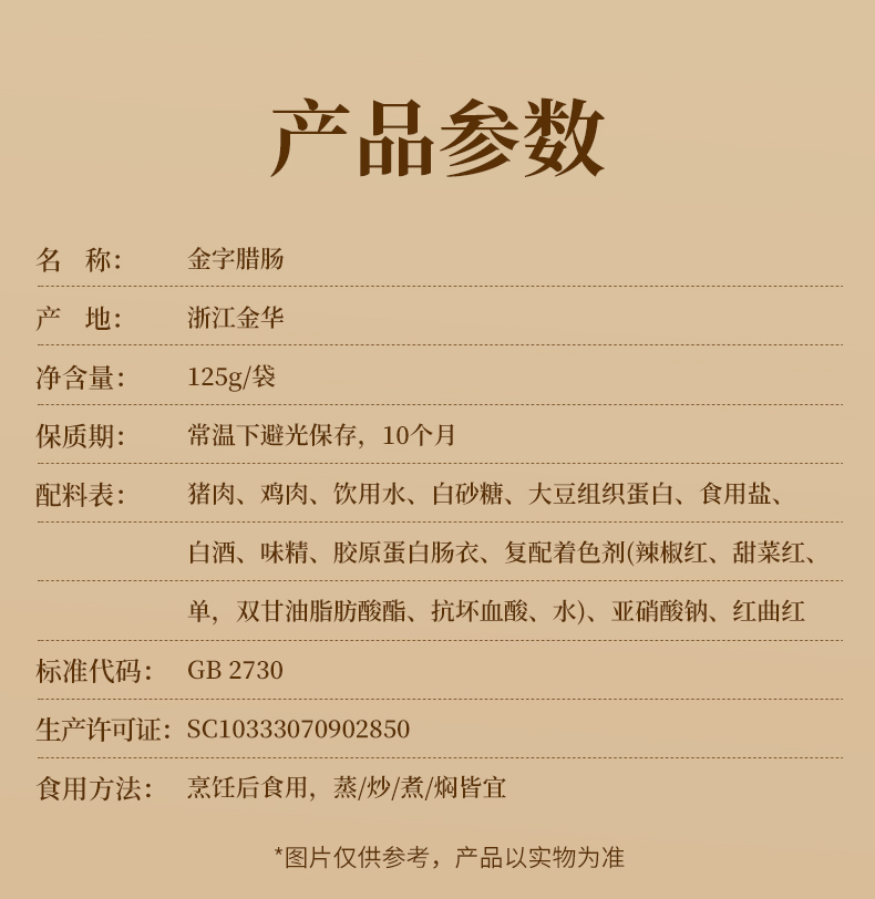 【品名】金字广式腊肠 肥瘦适中 炒菜/煲仔饭 125g*6包 【规格】125g*6包 【产地】国内 【保质期】10个月 【发货包装】独立包装 【发货地】浙江 【发货快递】申通、圆通、中通随机发 【不发货区域】新疆、西藏、内蒙古、宁夏、甘肃、青海、港澳台 【发货时效】48-72小时,周末节假日顺延 |