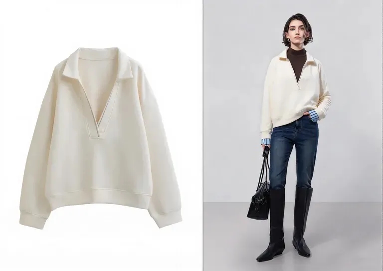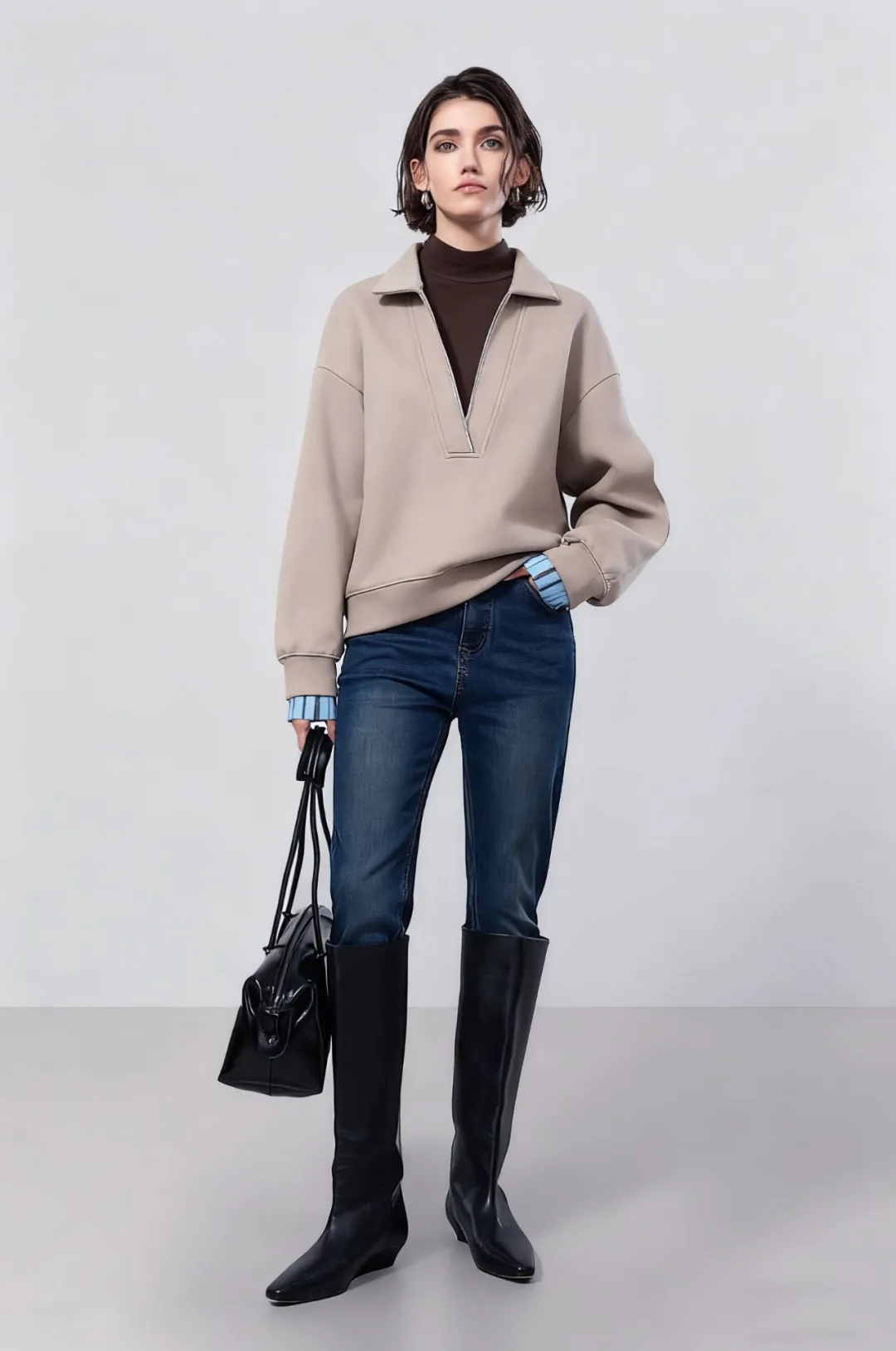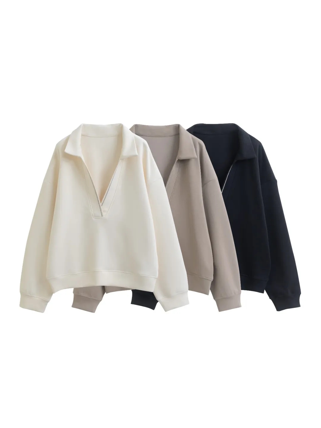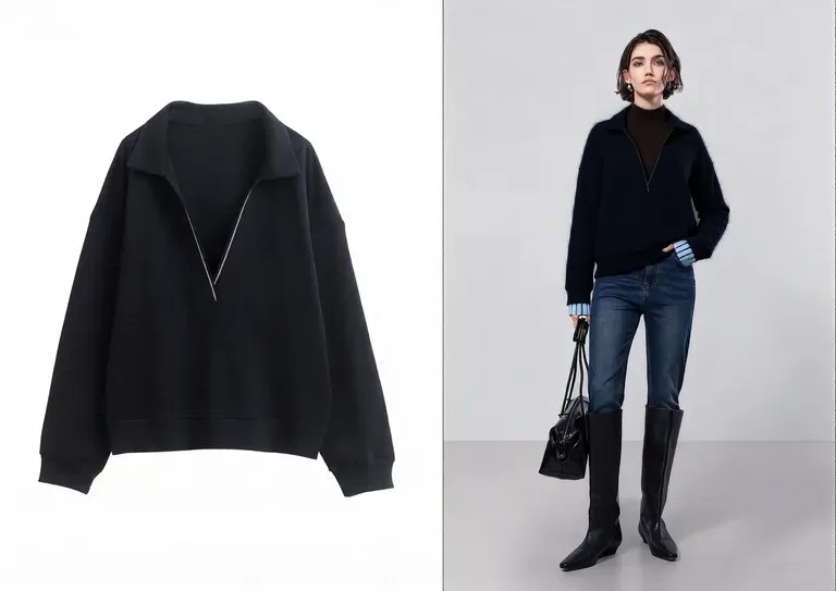 F031601秋冬新款韩系时尚极简风半拉链卫衣女长袖宽松百搭显瘦上衣