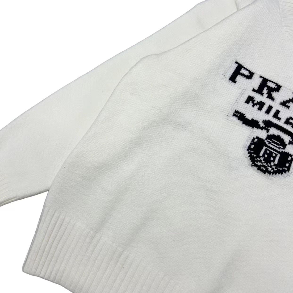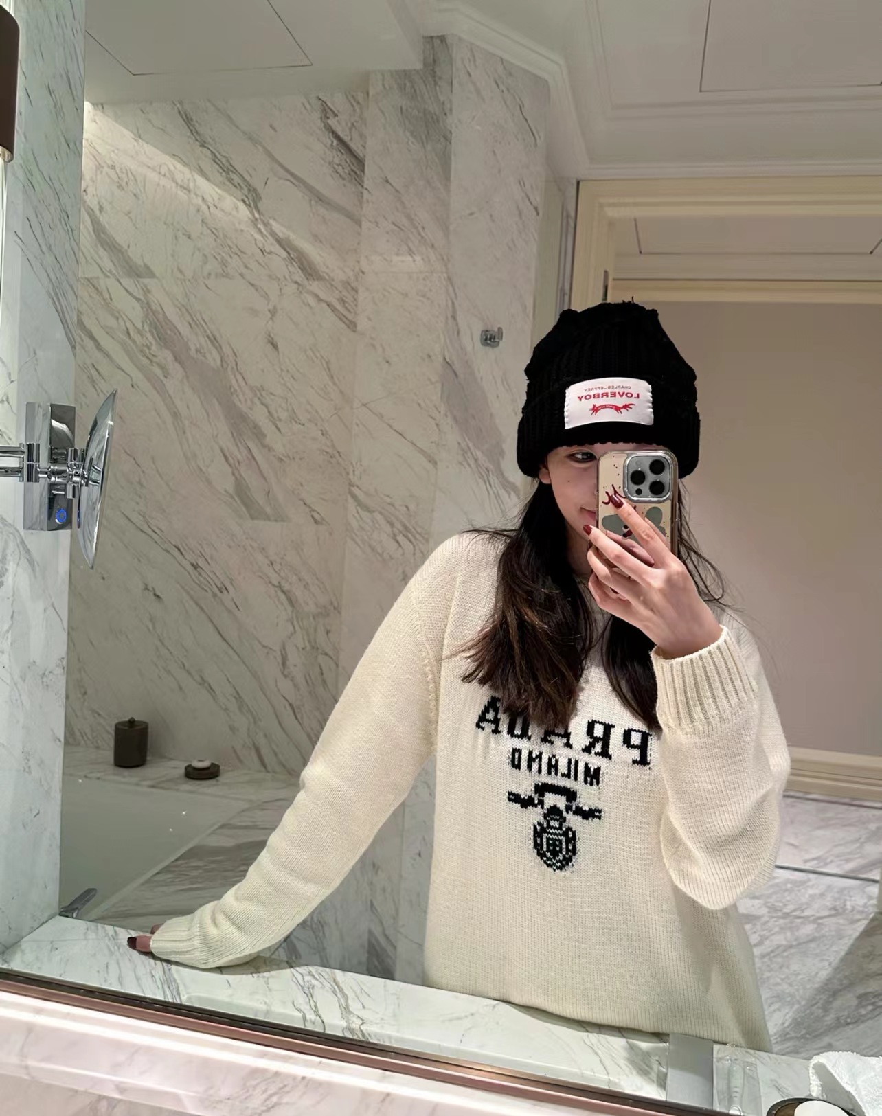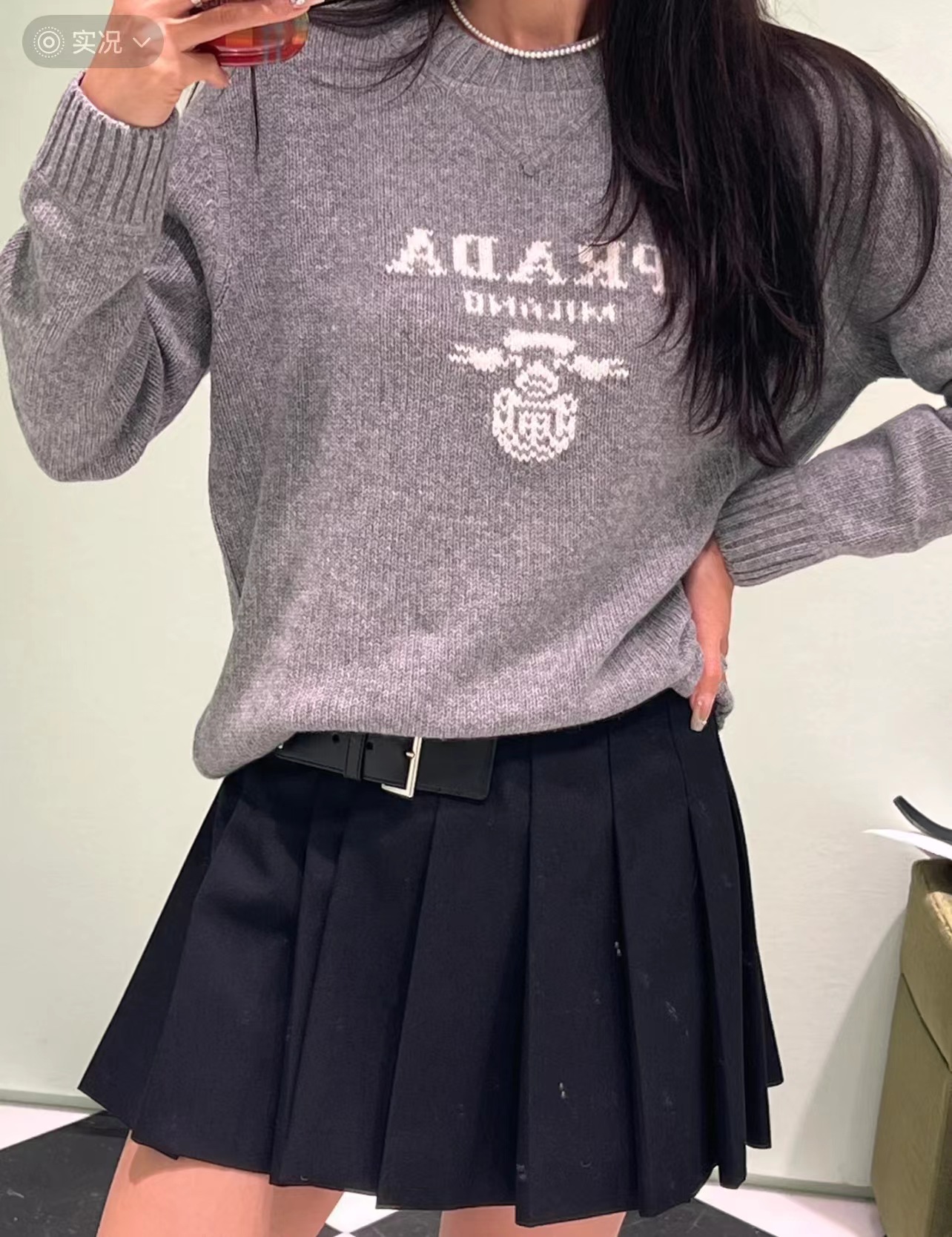 精典三角标提花字母logo大标情侣圆领针织毛衣-面料采用45%羊绒搭配55%棉纱 进口7针机器做局部提花五线缝盘拼接 成衣洗水 去除羊毛杂质 固定版型 采用精美细腻的羊绒面料打造 一贯以新颖方式重释的标志性 三角形徽标化身刺绣彰显与众不同的品牌