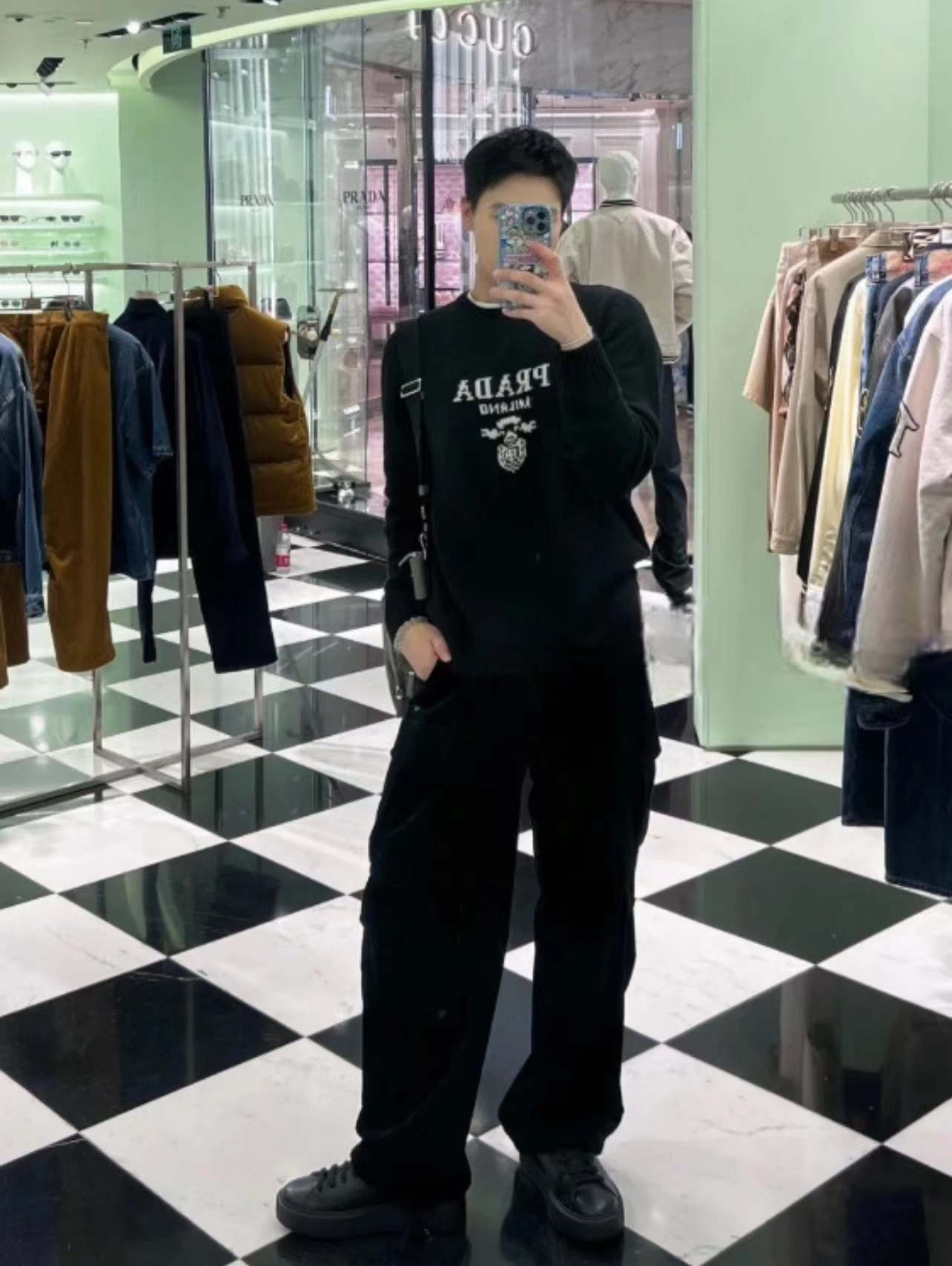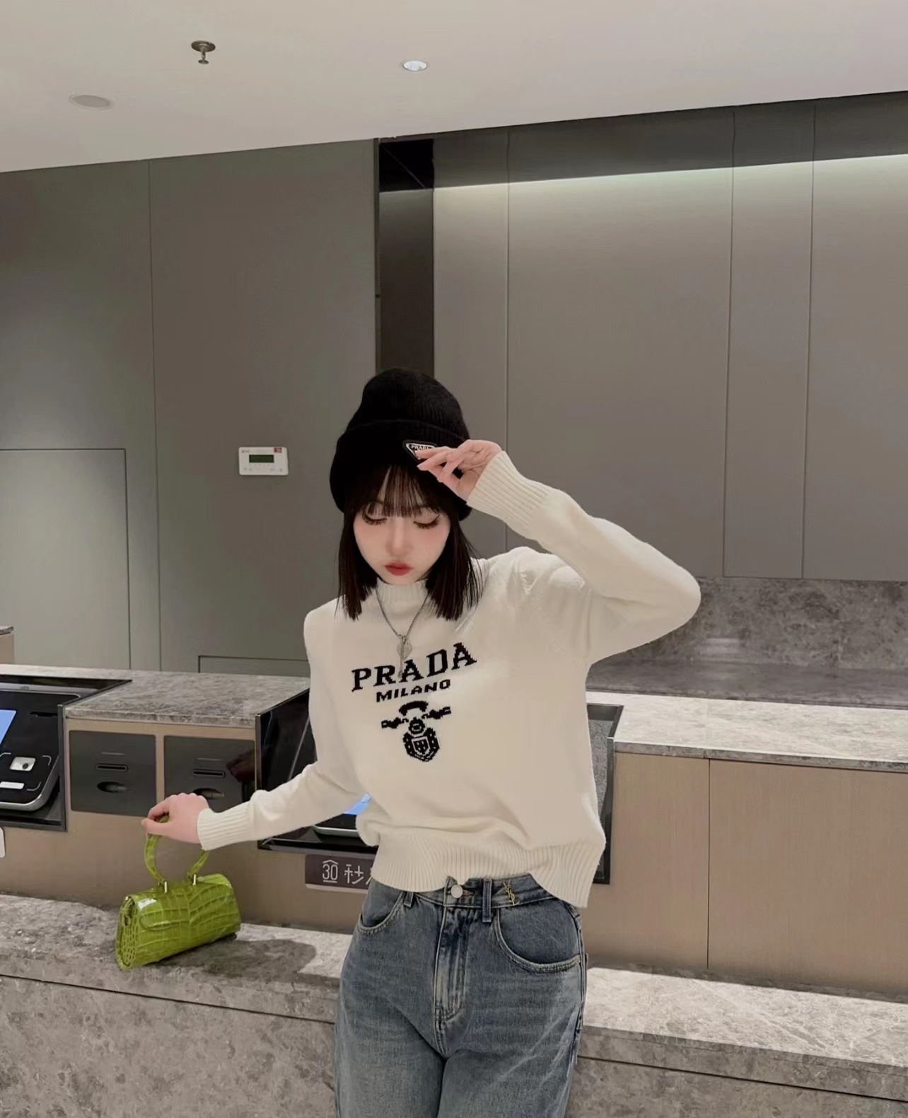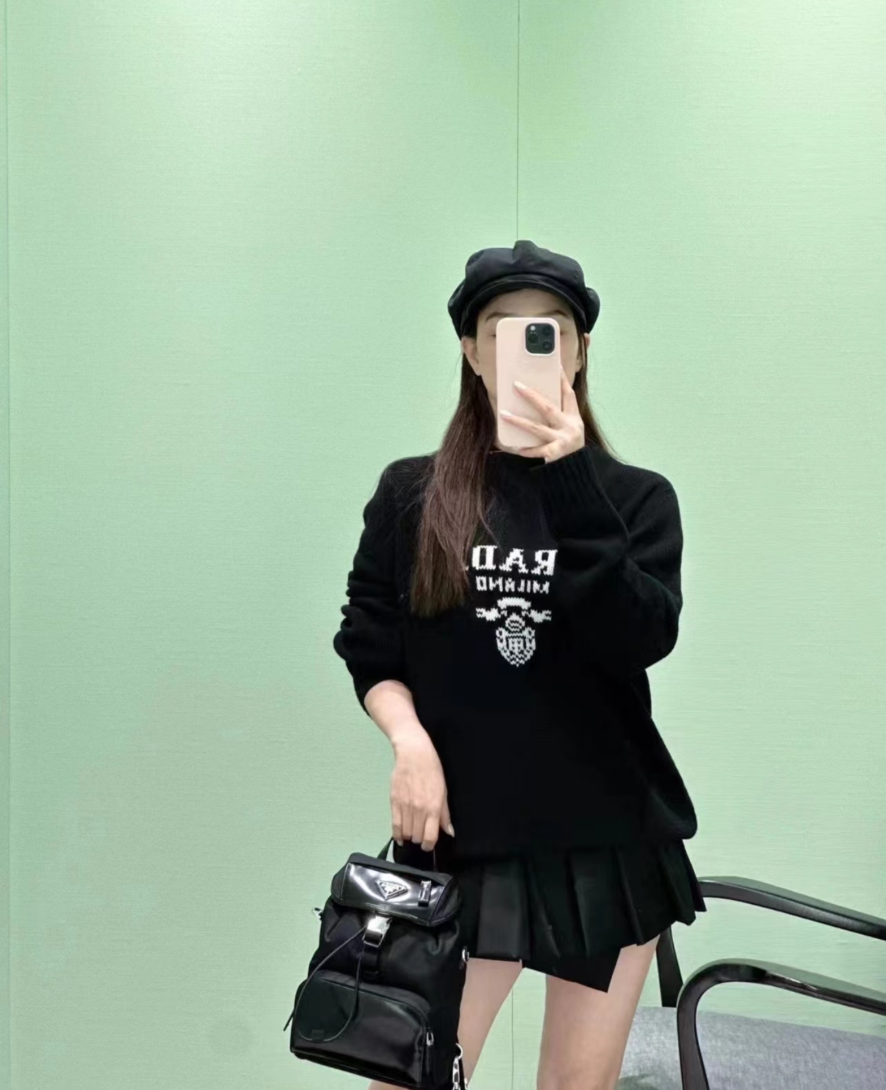 精典三角标提花字母logo大标情侣圆领针织毛衣-面料采用45%羊绒搭配55%棉纱 进口7针机器做局部提花五线缝盘拼接 成衣洗水 去除羊毛杂质 固定版型 采用精美细腻的羊绒面料打造 一贯以新颖方式重释的标志性 三角形徽标化身刺绣彰显与众不同的品牌
