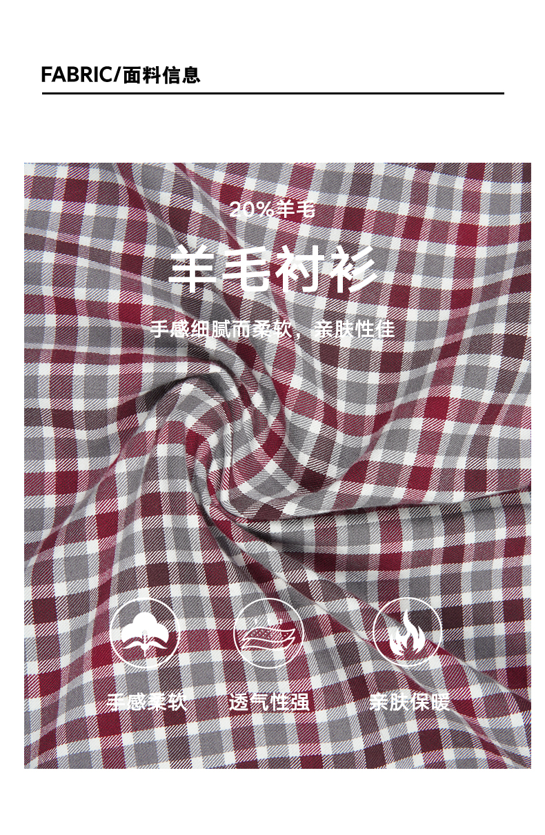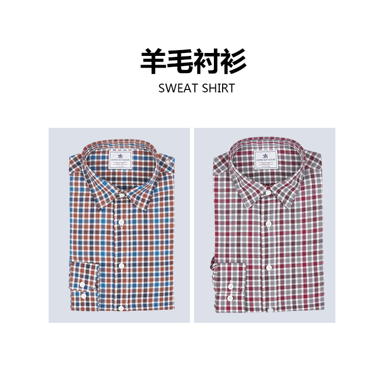 【 红格羊毛混纺】占姆士羊毛格子长袖衬衫男秋冬季新款高端商务休闲男士衬衫潮