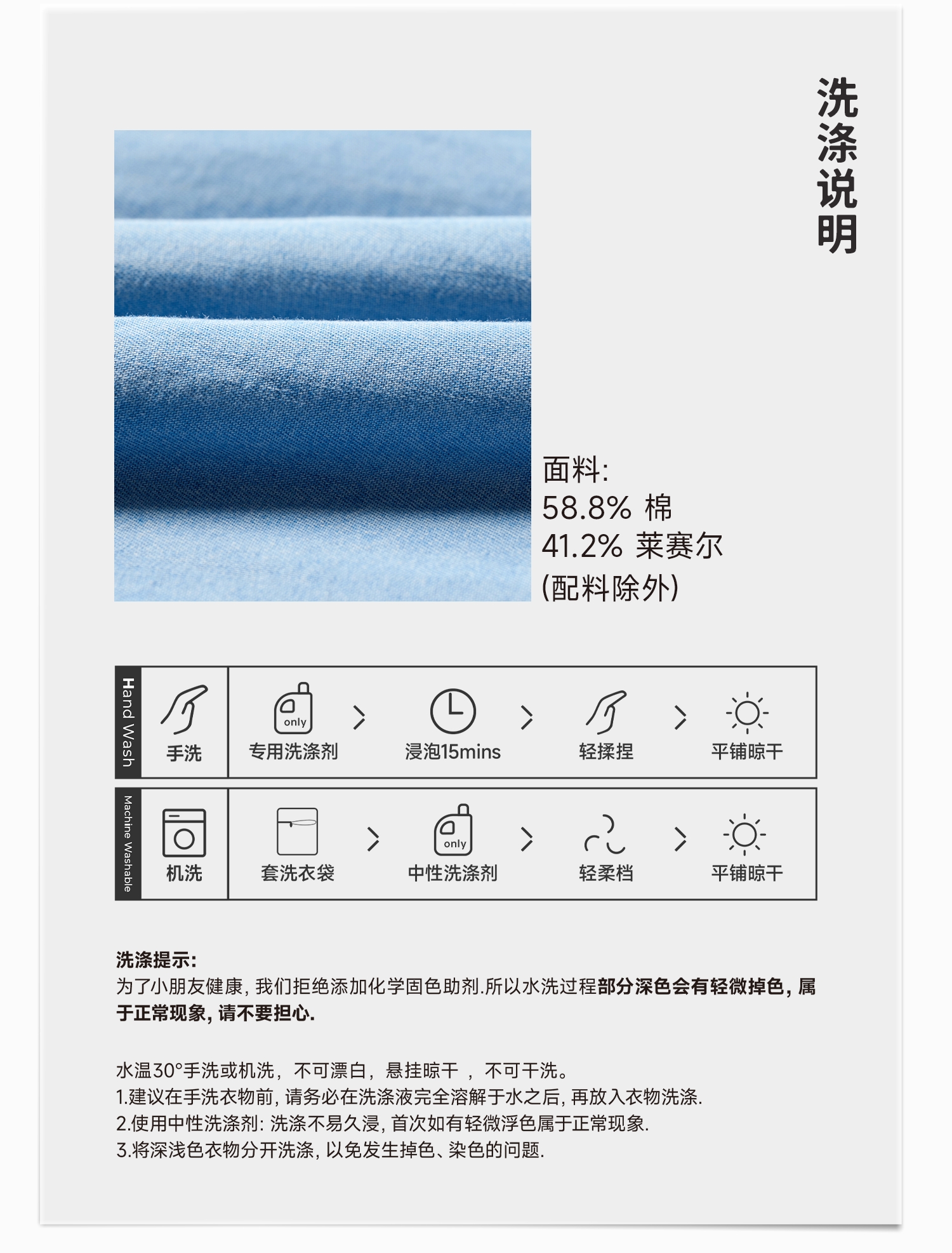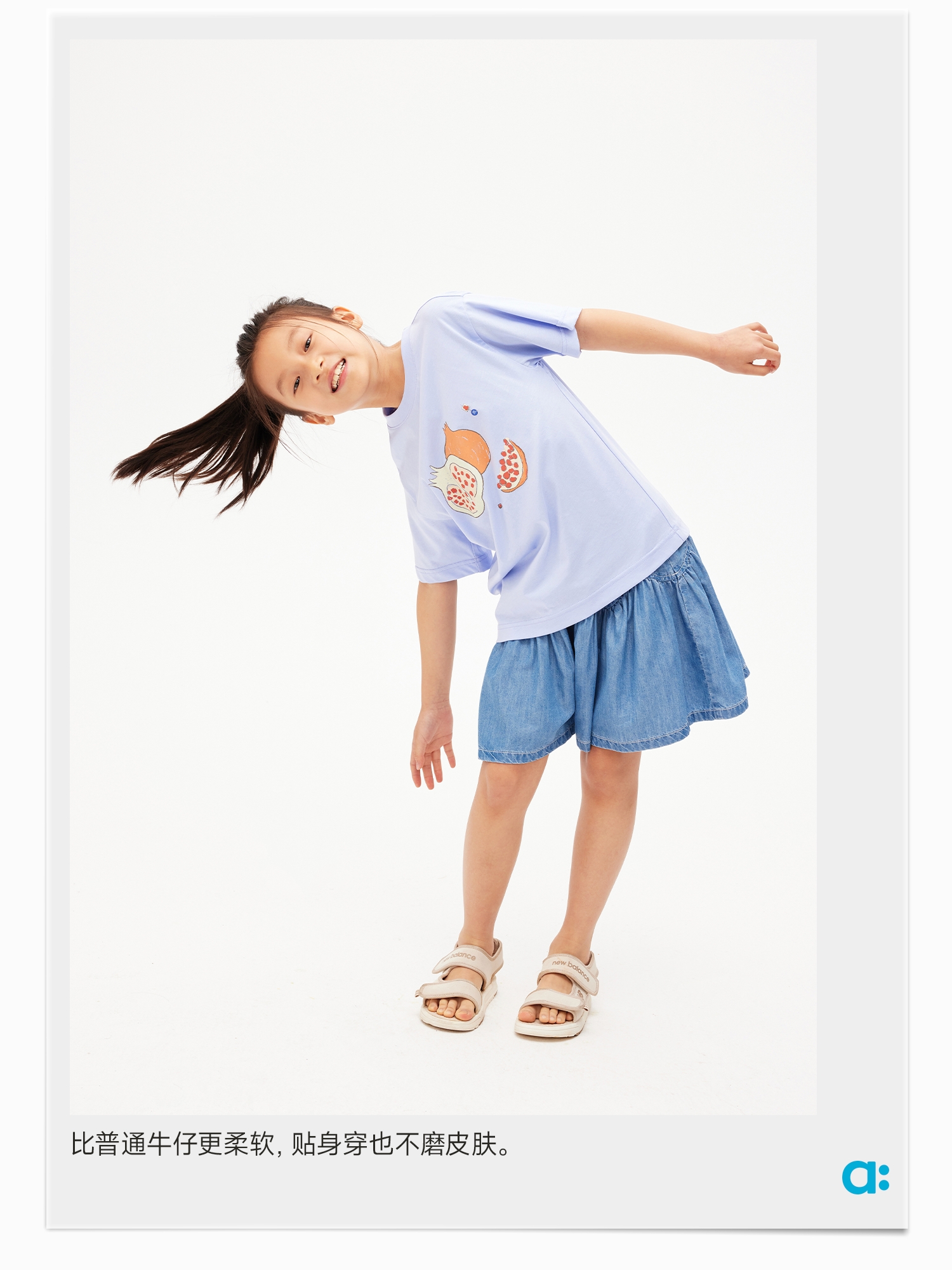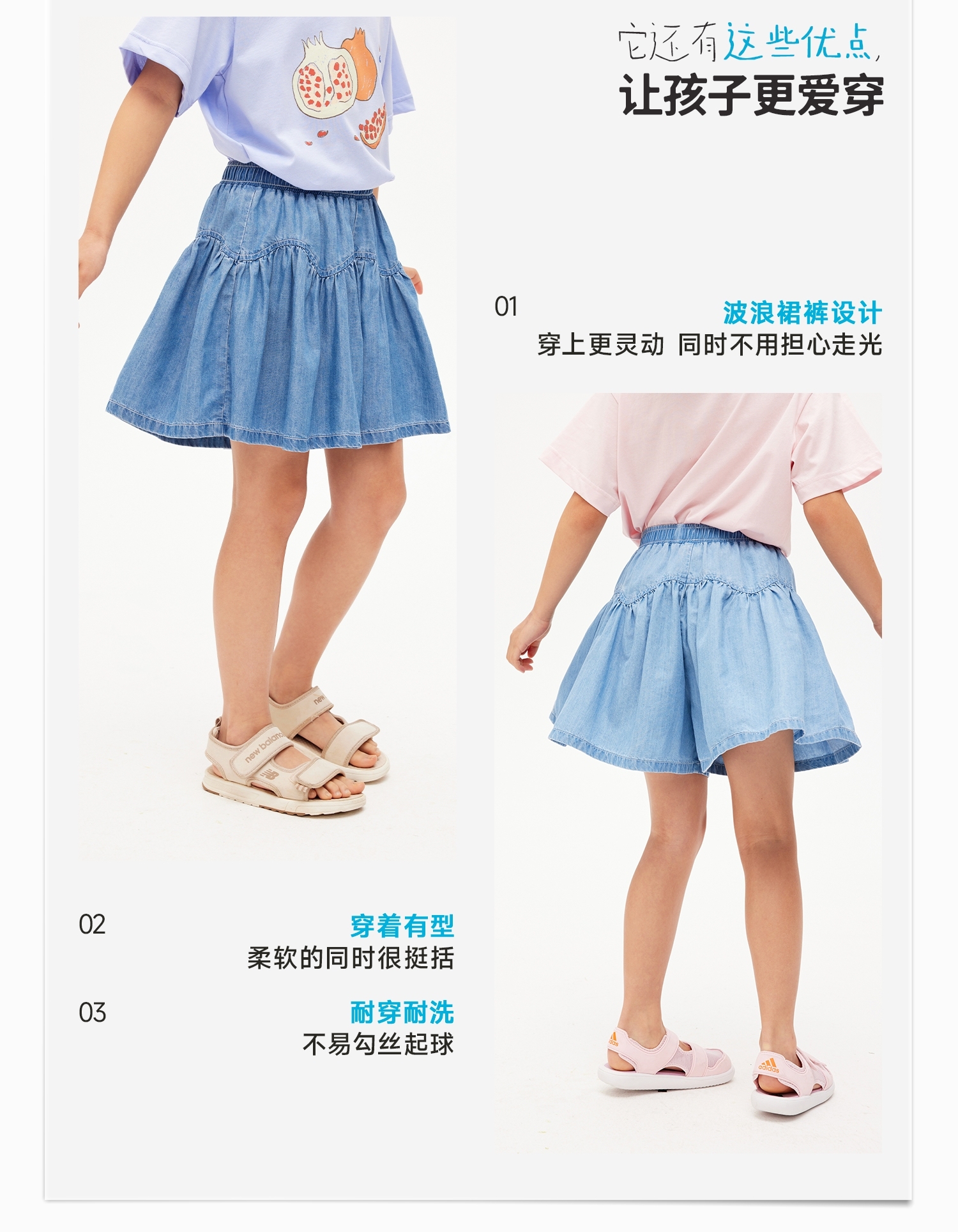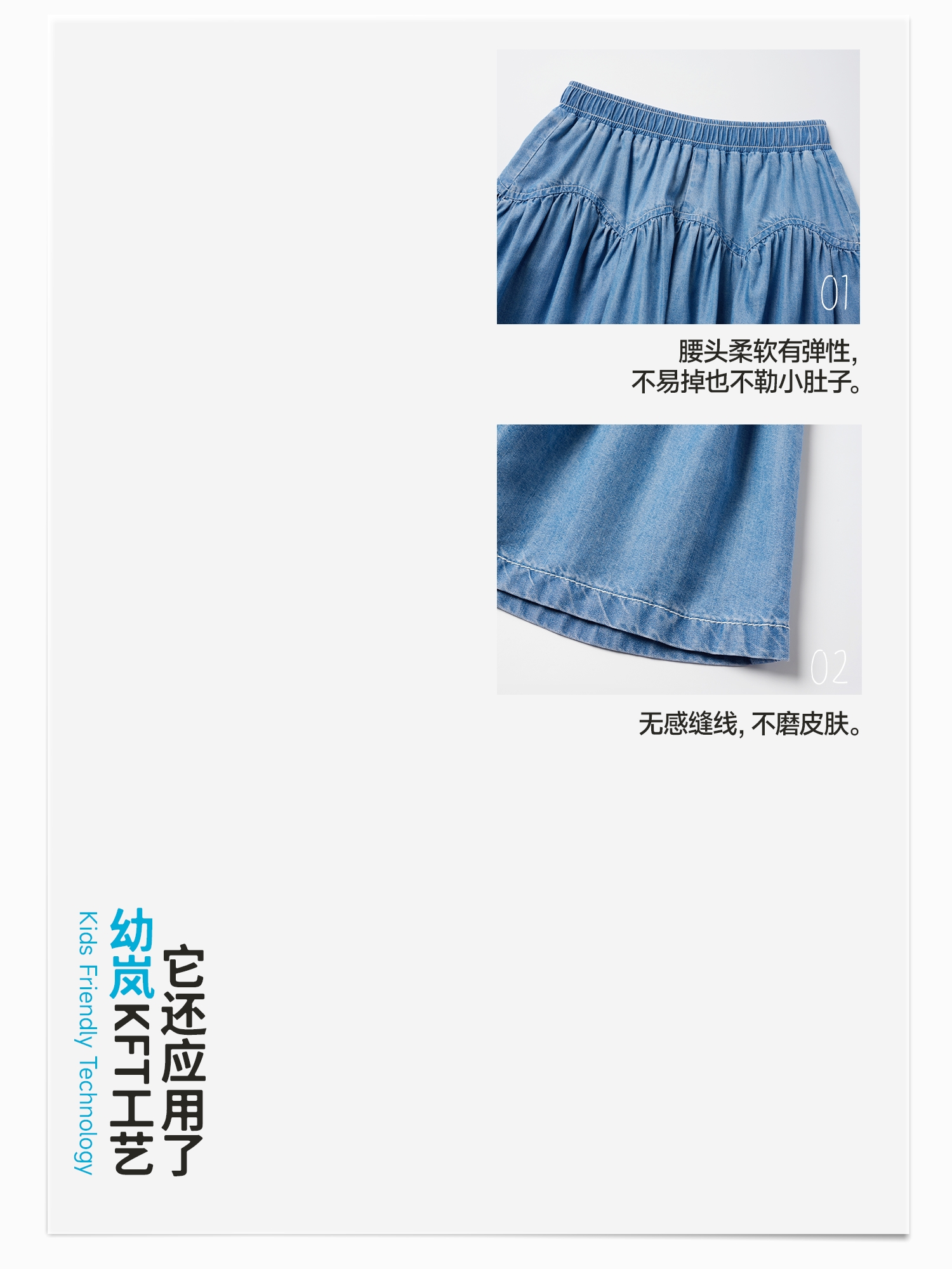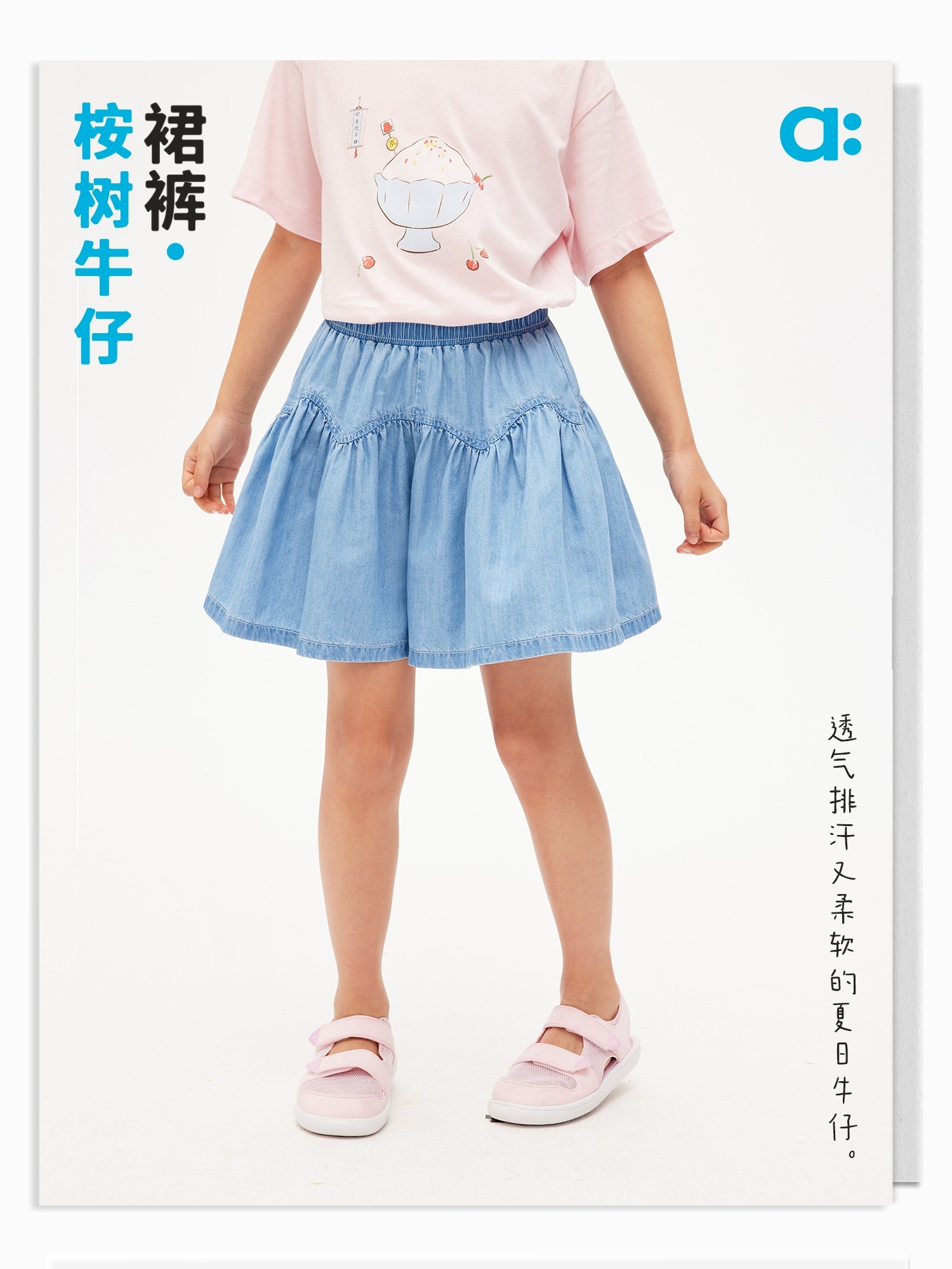 【好友特惠】幼岚「桉树牛仔」裙裤舒适贴身吸湿排汗24夏新款儿童女童牛仔裙裤ZY