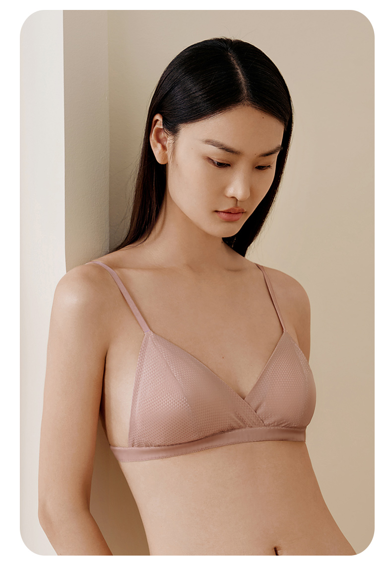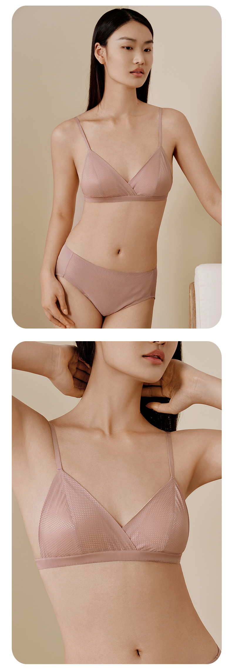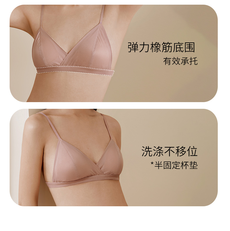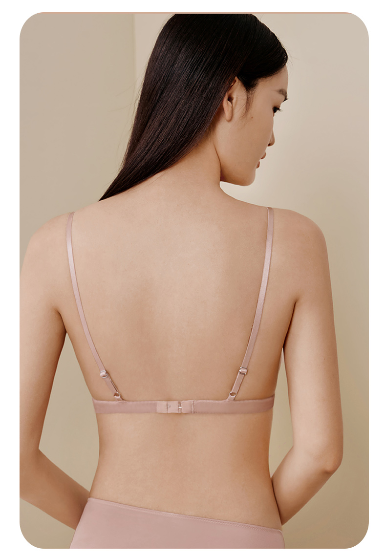 金三塔里外桑蚕丝缎面文胸女深V三角杯轻薄无钢圈柔软亲肤内衣女 NZFFC304