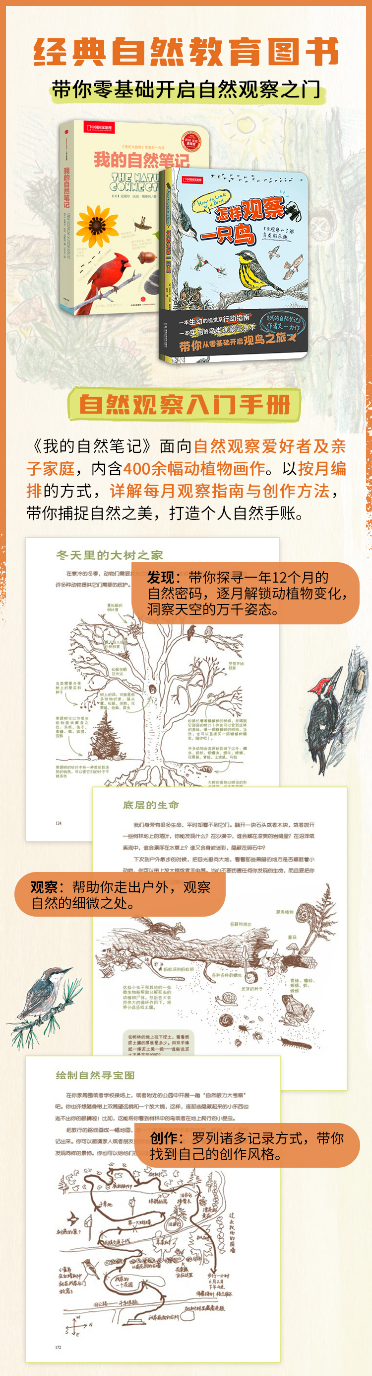 克莱尔自然教育系列:我的自然笔记+怎样观察一只鸟 和孩子一起观察大自然、探索大自然 自然观察手册 观鸟手册 科普