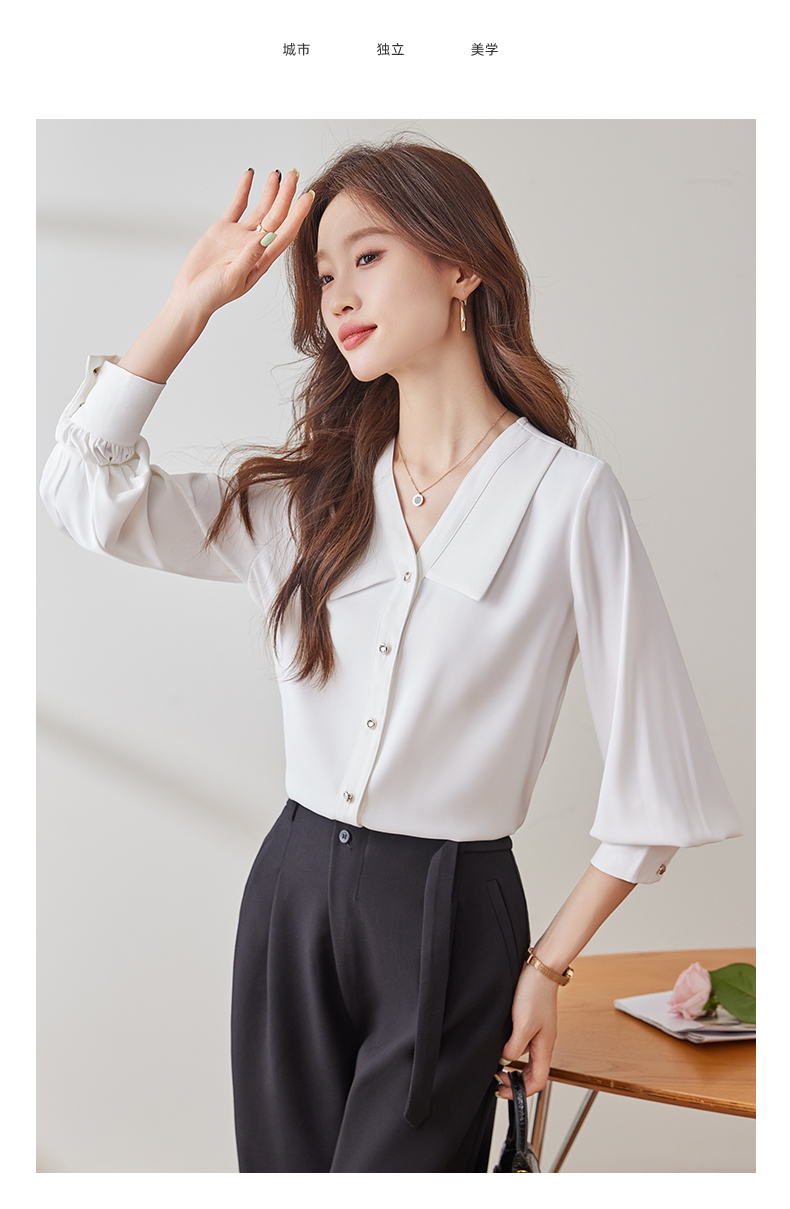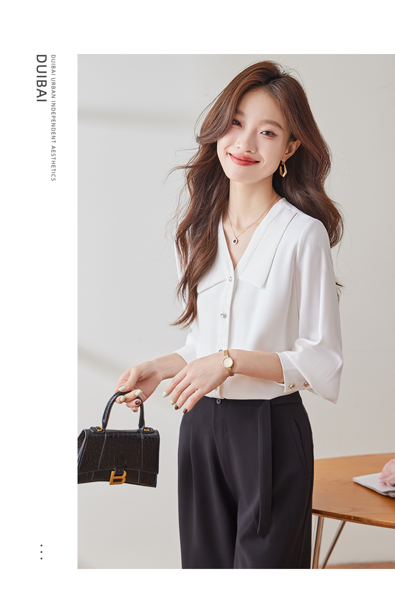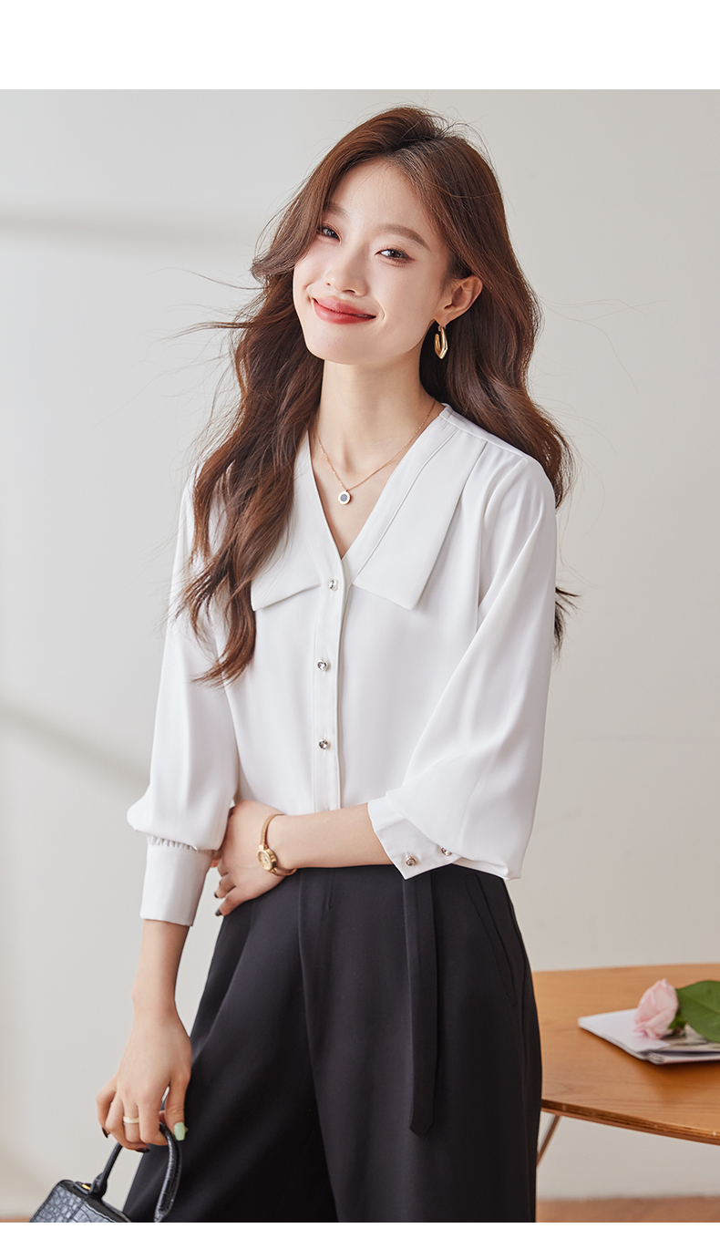 Q180新款长袖气质衬衣白色洋气时尚春秋小众设计感宽松百搭衬衫