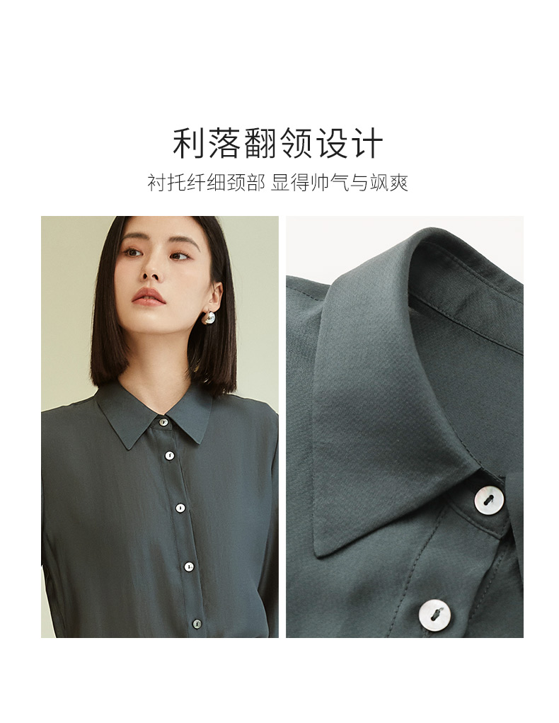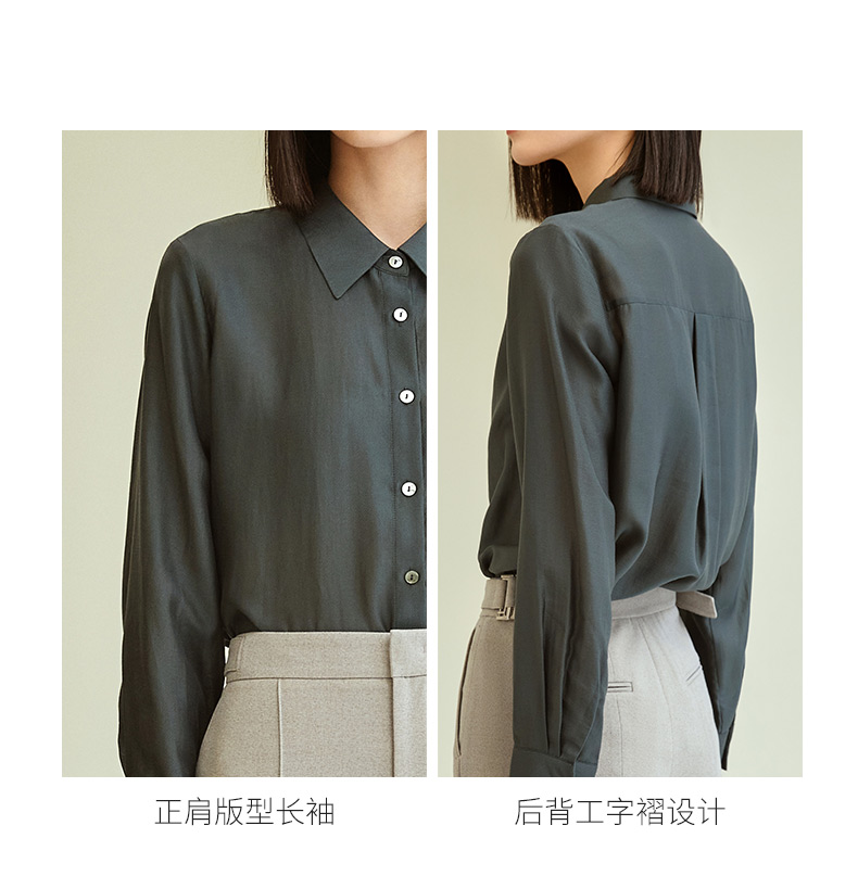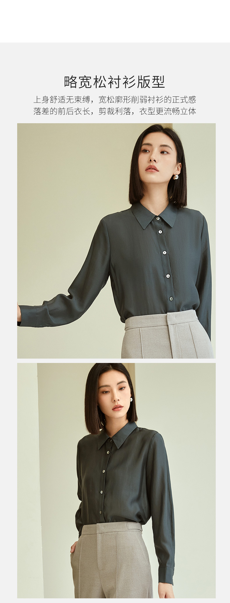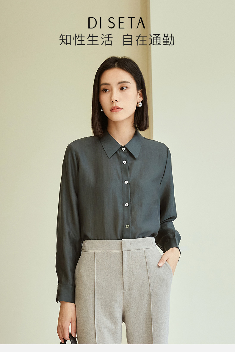 玳莎职业通勤衬衫女2023秋冬新款气质百搭高级感纯色宽松打底衬衫 DD31301