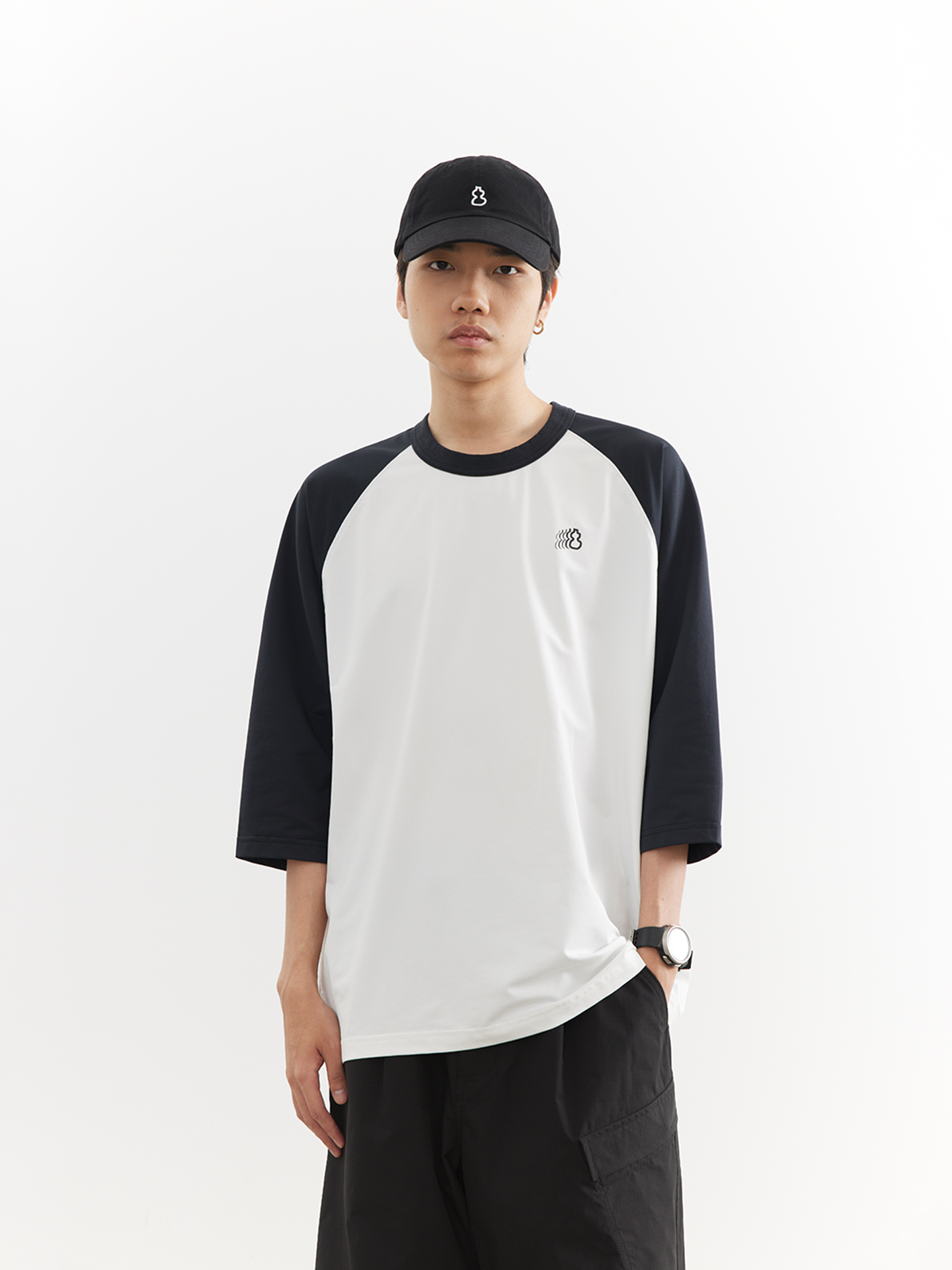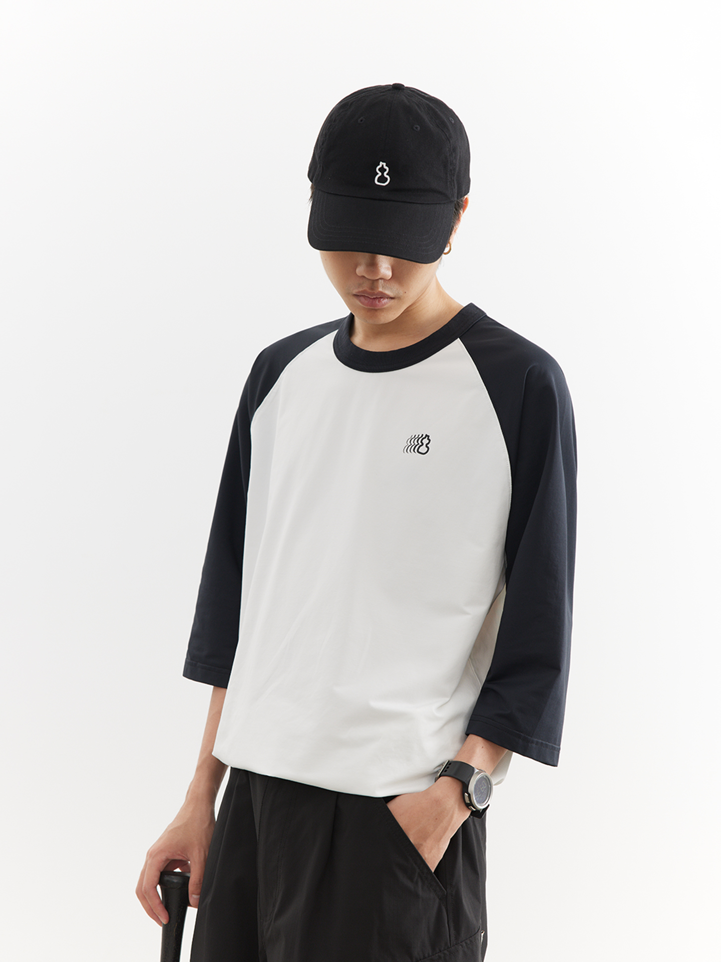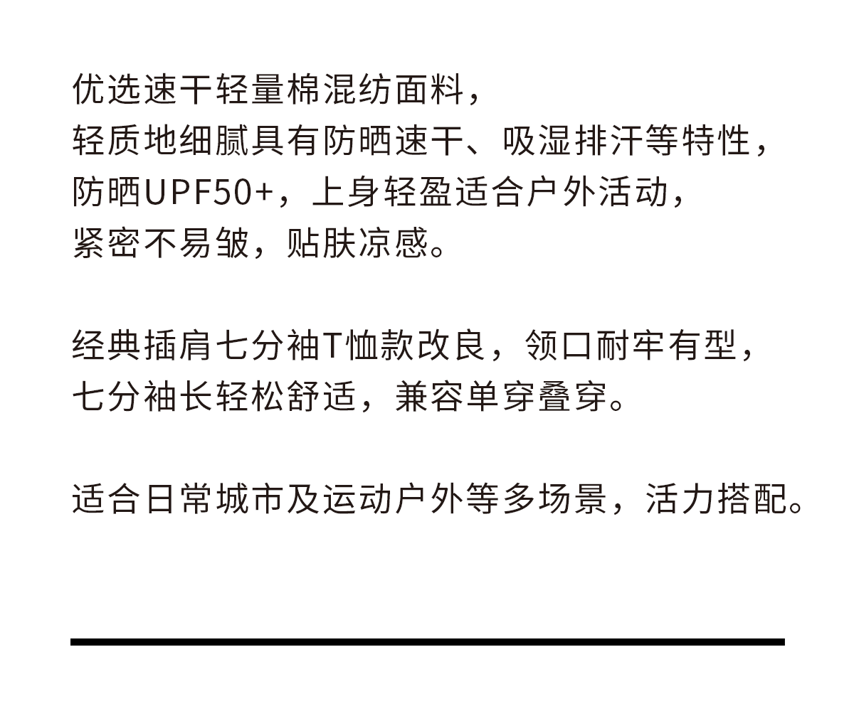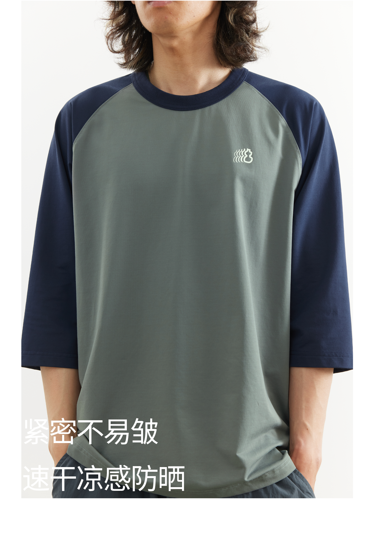吃茶去chichaqu26春夏速干防晒凉感拼色插肩七分短袖T恤户外运动