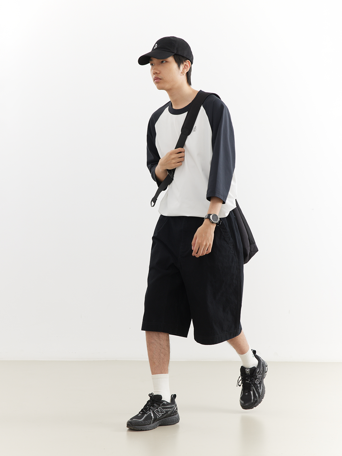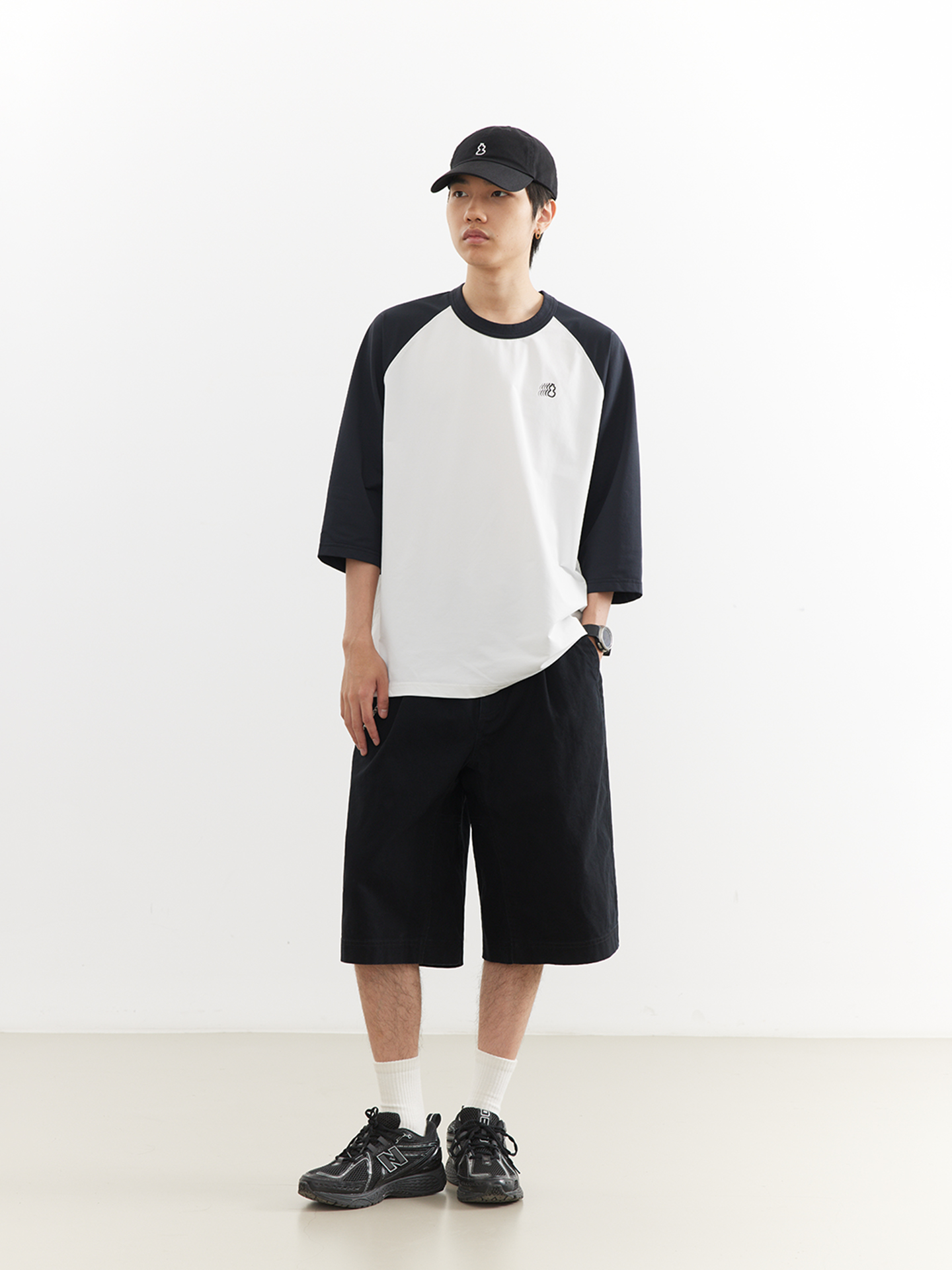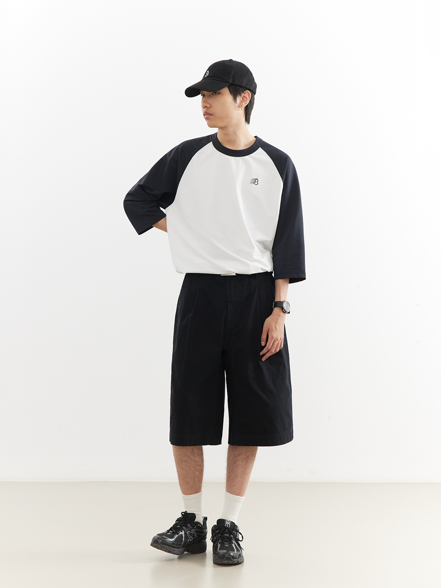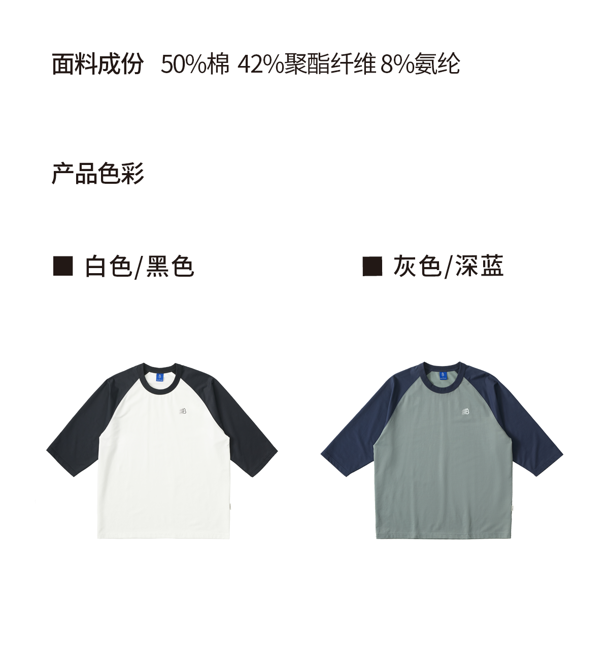 吃茶去chichaqu26春夏速干防晒凉感拼色插肩七分短袖T恤户外运动