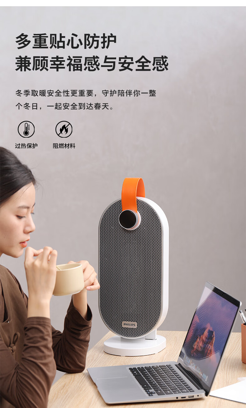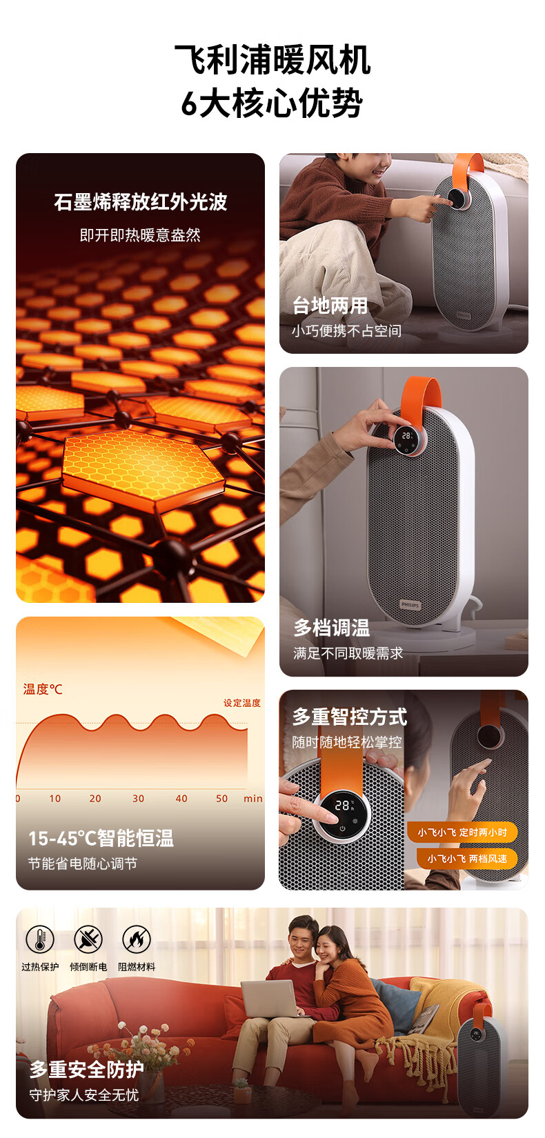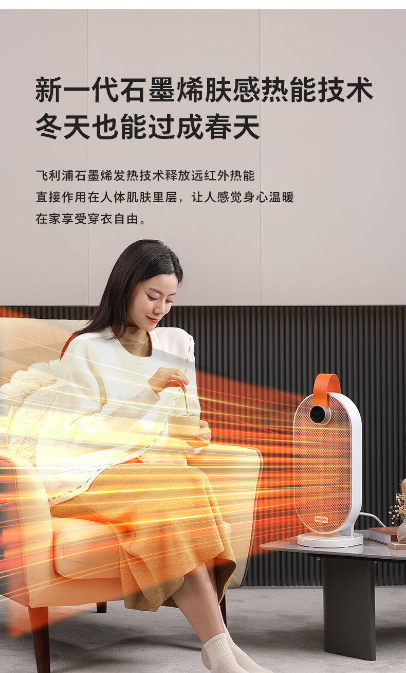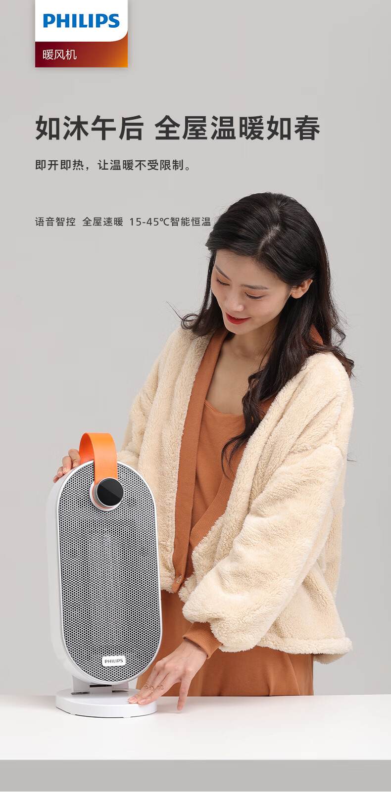【6F】飞利浦(PHILIPS)取暖器家用暖风机石墨烯电暖气办公室浴室多档恒温速热节能语音遥控桌面台式便携烤火炉 AHR2244FD