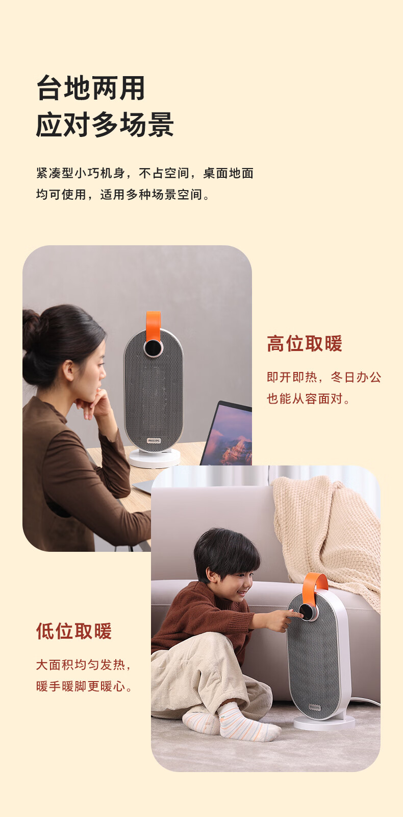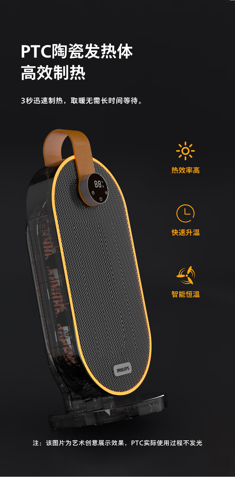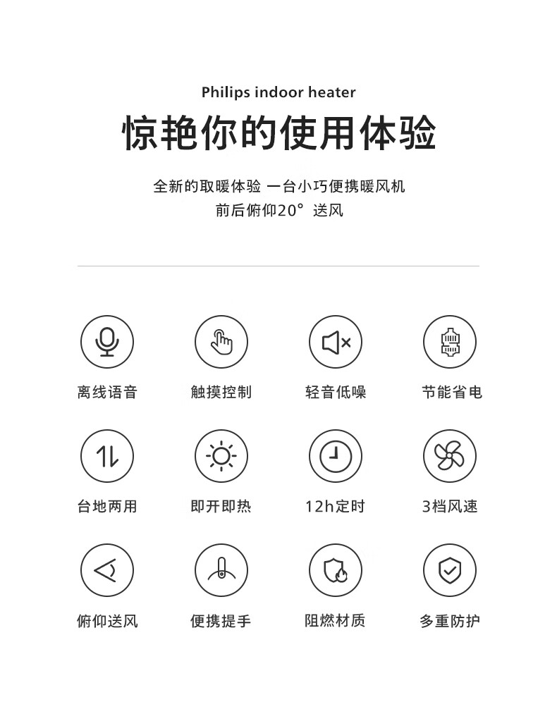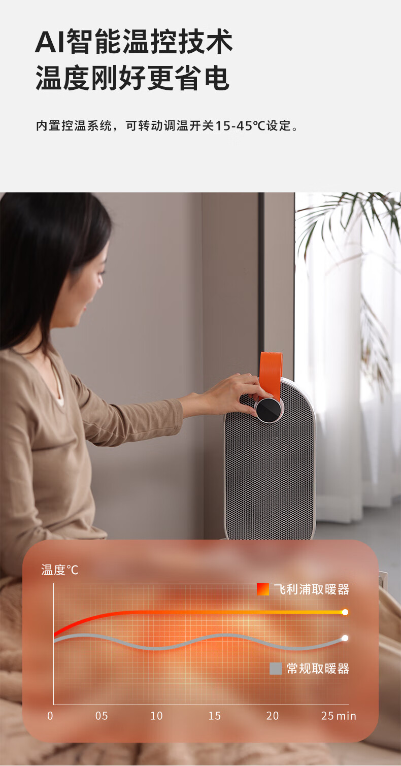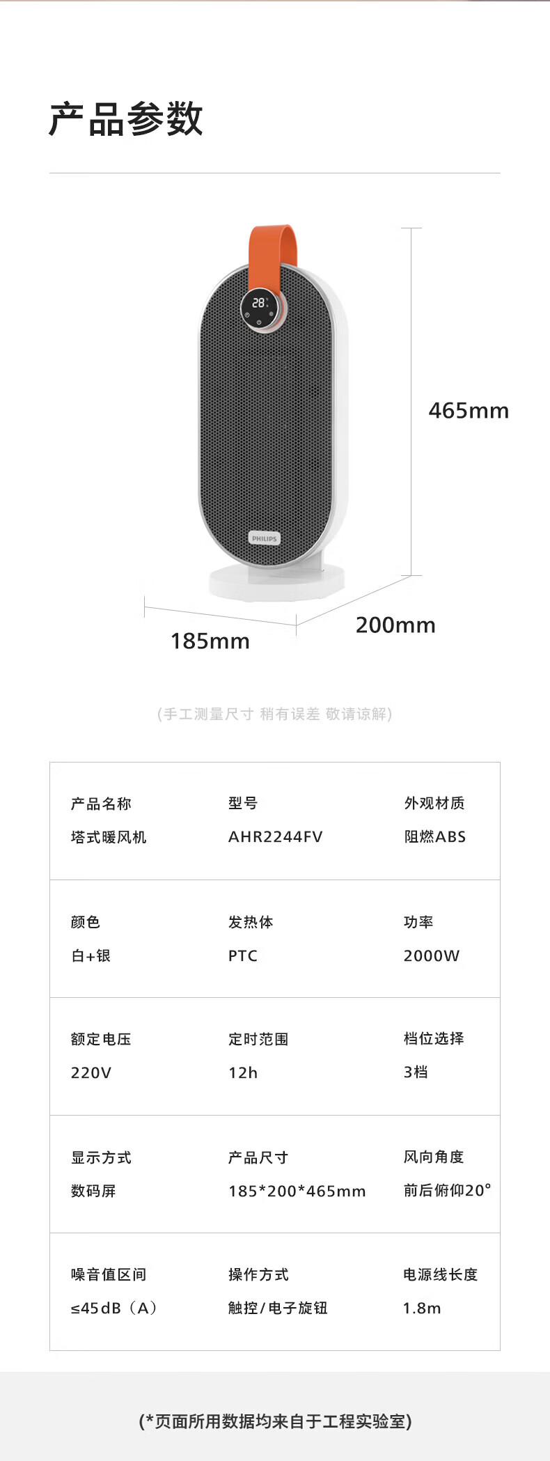 【6F】飞利浦(PHILIPS)取暖器家用暖风机石墨烯电暖气办公室浴室多档恒温速热节能语音遥控桌面台式便携烤火炉 AHR2244FD