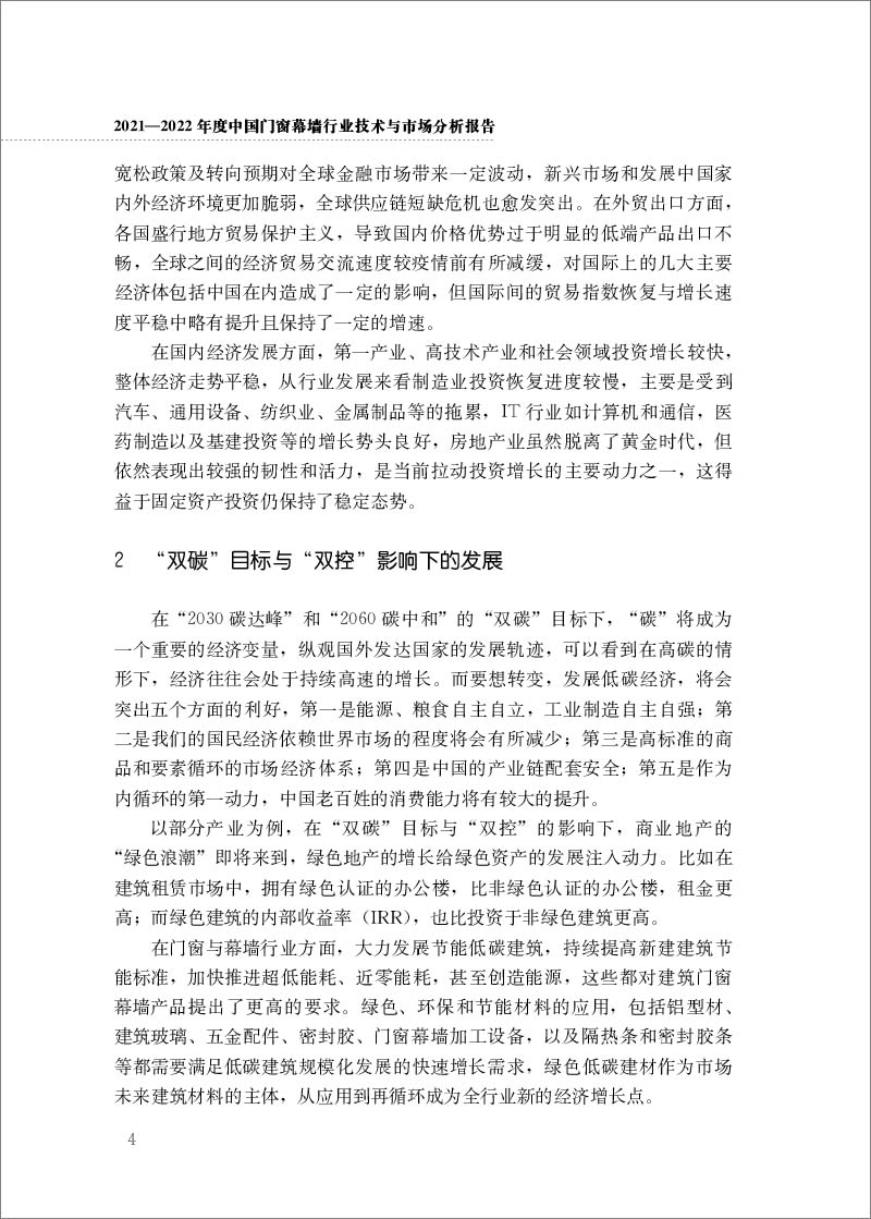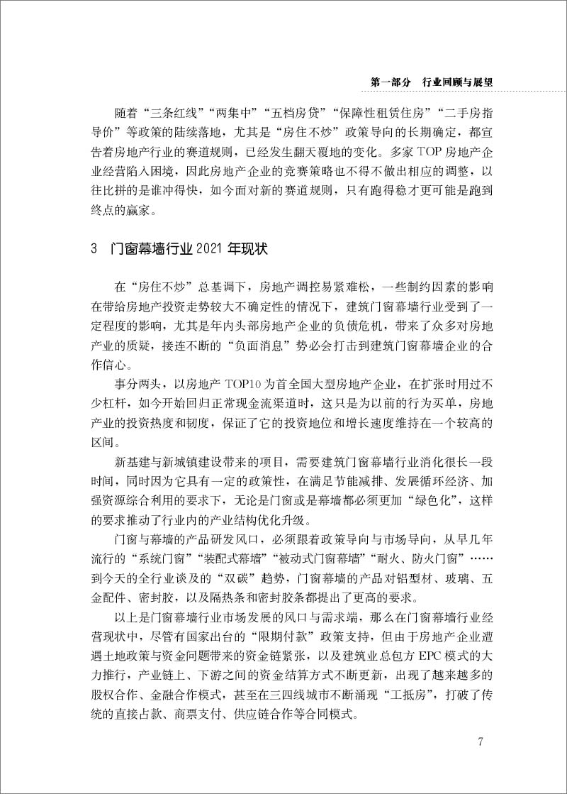 技术是推动产业升级的核心动力,市场是企业赖以生存的关键土壤。本年度推出的《2021—2022年度中国门窗幕墙行业技术与市场分析报告》将继续以弘扬技术创新、洞察市场趋势为主旨,深入浅出地剖析行业相关的政策,解读行业发展的方向,透过对新技术、新产品、新工艺的介绍,以点带面地还原当前的行业环境和发展趋势。