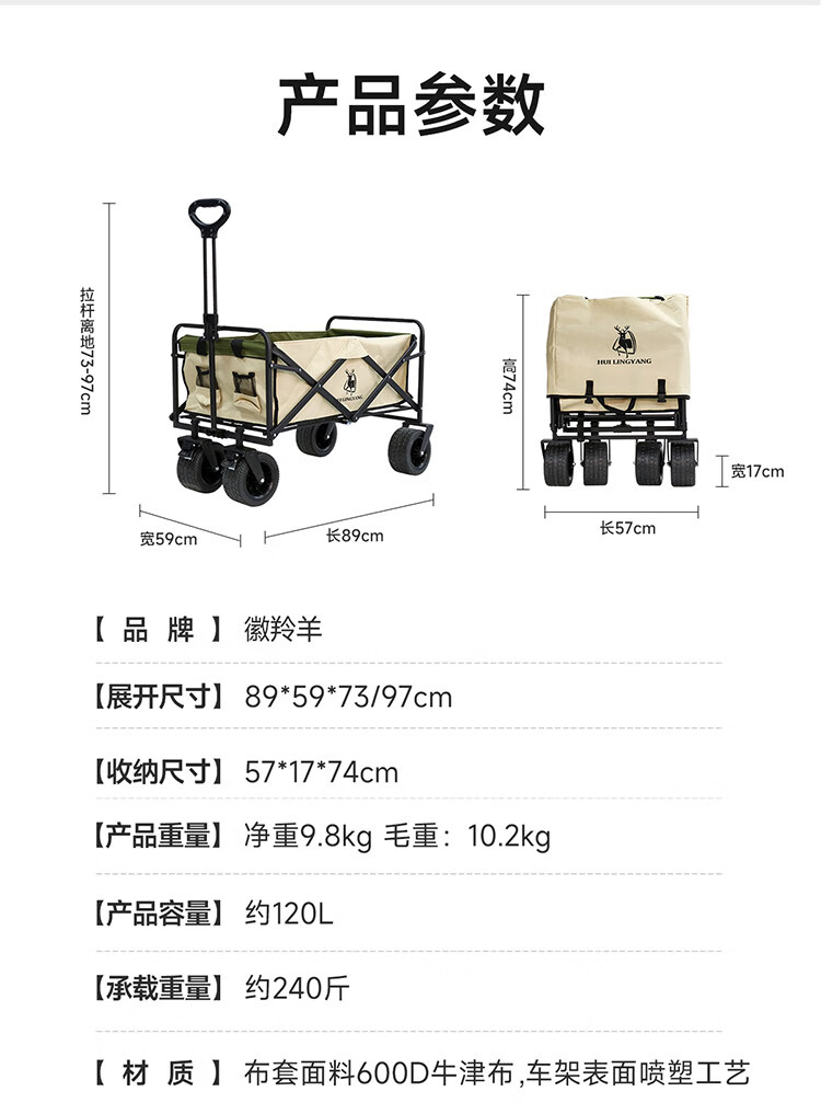 徽羚羊 云途 拖车 7寸宽轮 刹车后开款 黑色