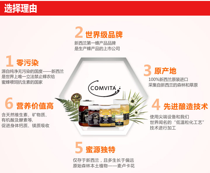 Comvita康维他麦卢卡蜂蜜含有天然独麦素(UMF),由纽西兰教授皮得博士发现的一种特殊的无过氧化氢抗菌活性物质,具有高杀菌能力。目前未有在任何其它蜂蜜中发现UMF TM物质,使UMF TM麦卢卡成为世界上最珍贵的蜂蜜之一。