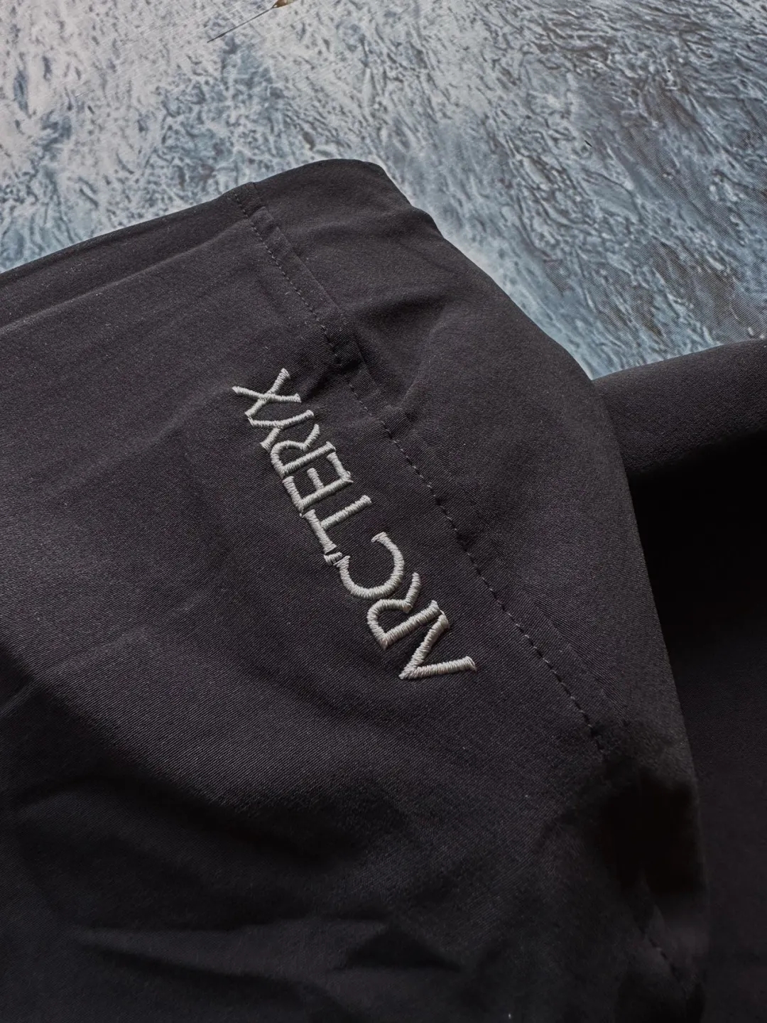 袖口处采用的是一个弹力拼接设计。