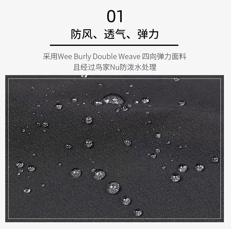 面料采用三防面料:防风,防雨,防刮耐磨。
