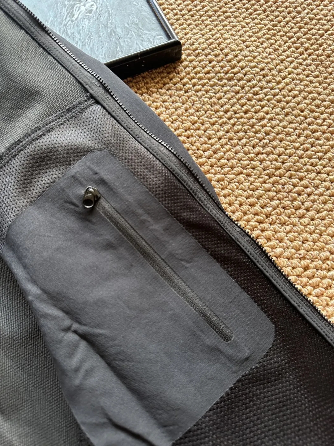 内里压胶,有透气网格设计,压胶口袋