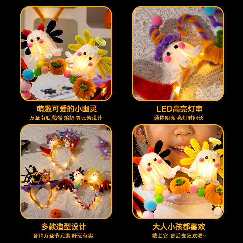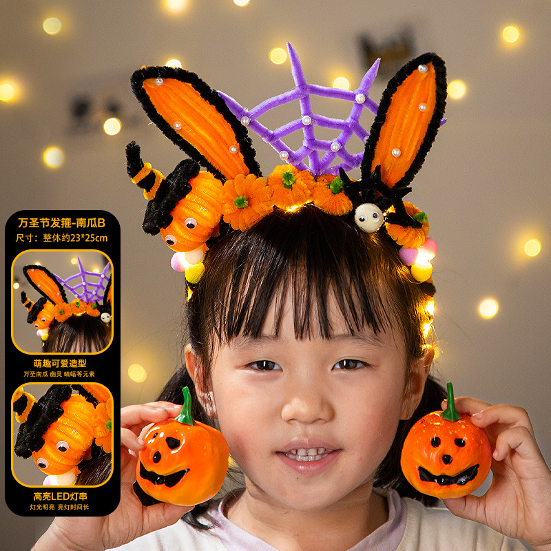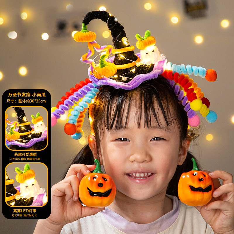 【万圣节限定❗️南瓜灯发光发箍】创意手工制作「万圣节扭扭棒发箍」一秒上镜🔥超好看~儿童diy材料包聚会搞怪头饰装扮道具L