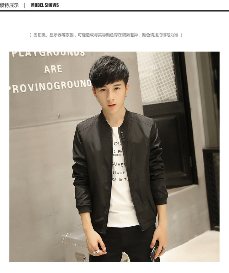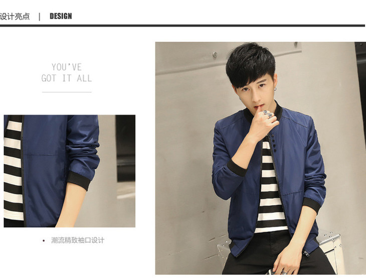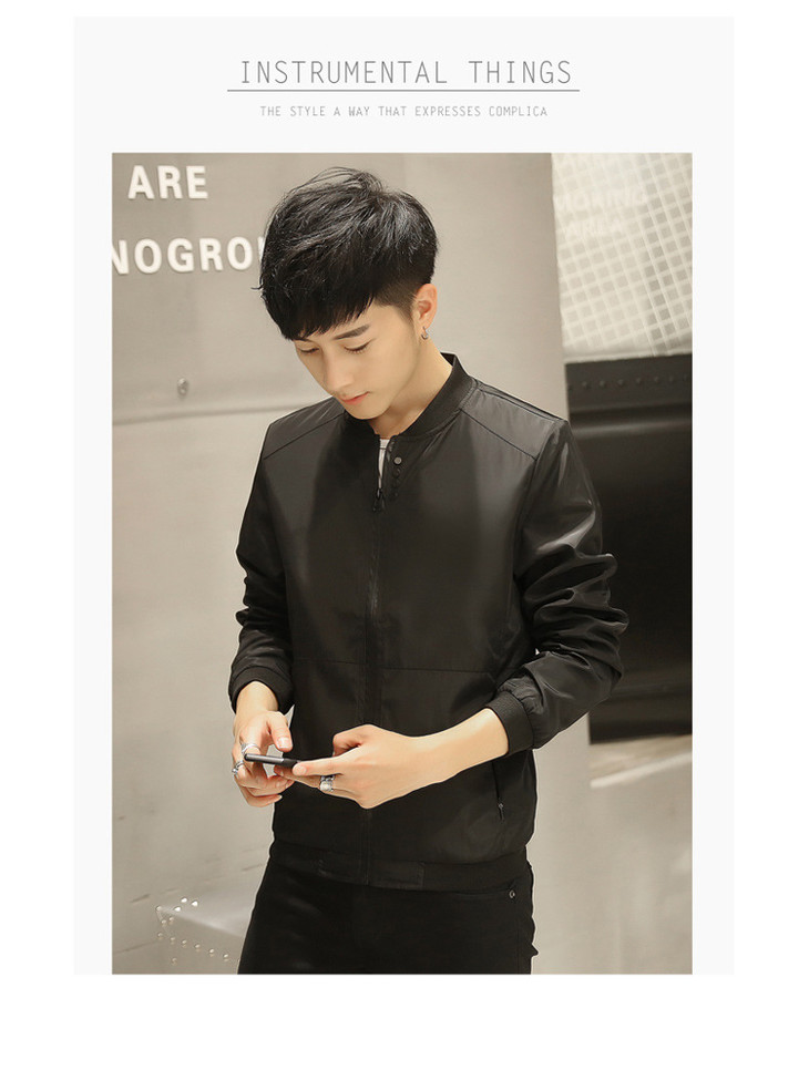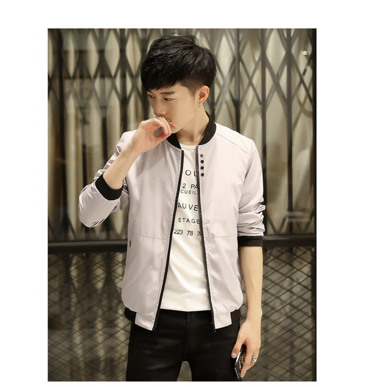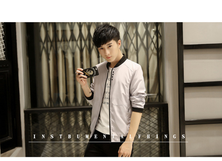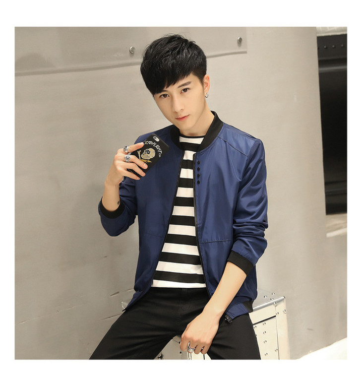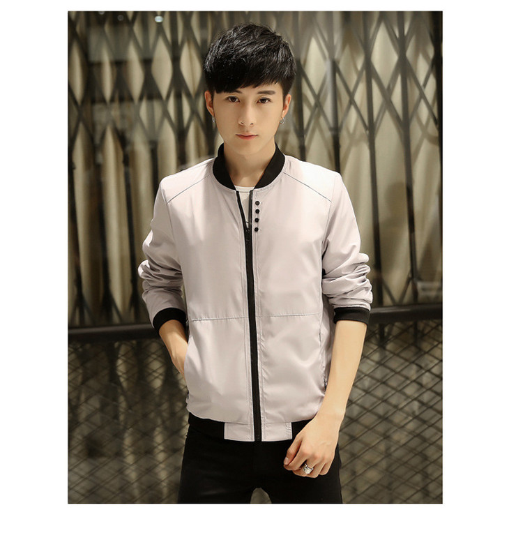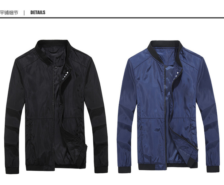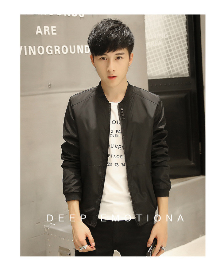 【外套男】秋季新款男式夹克纯色四排扣外套男士韩版修身简约立领男装外衣潮