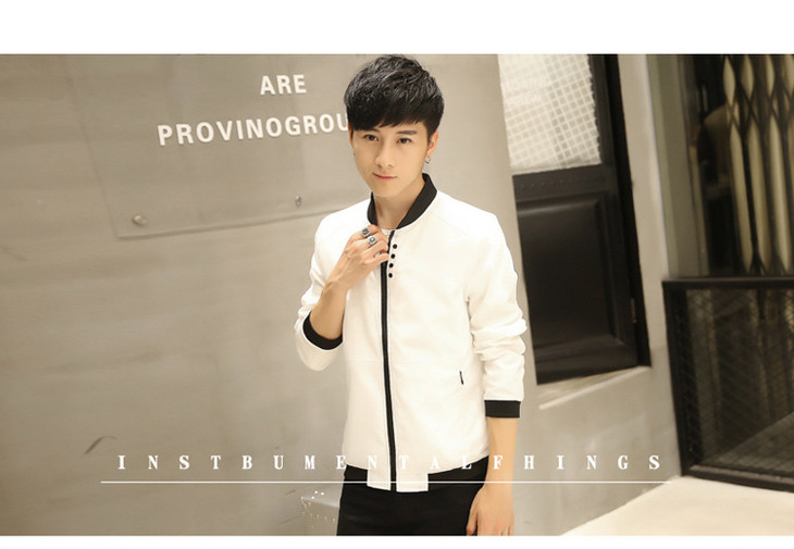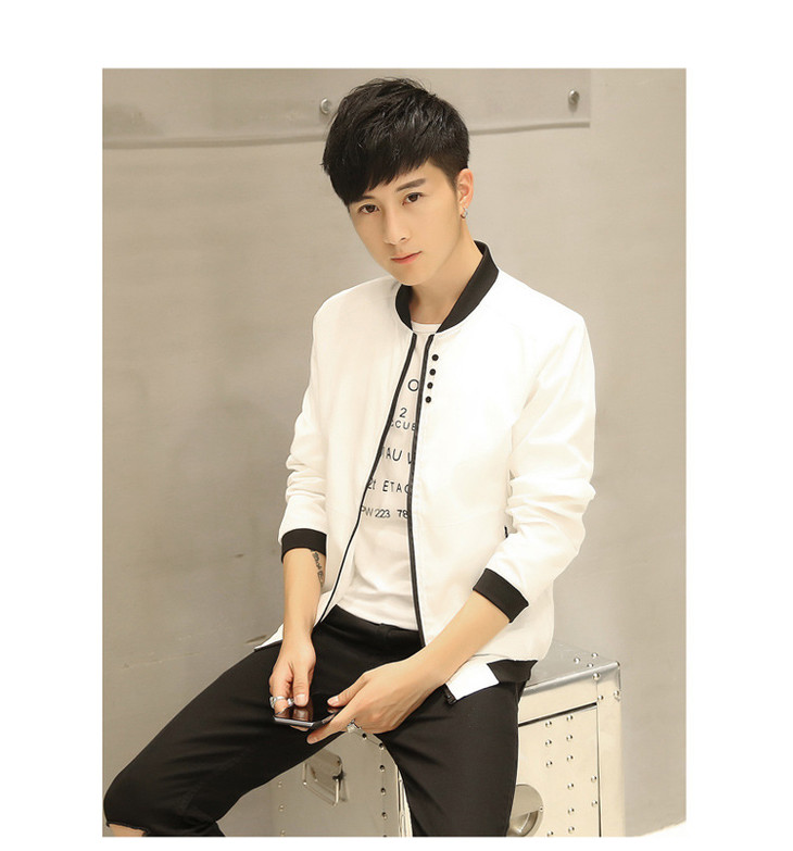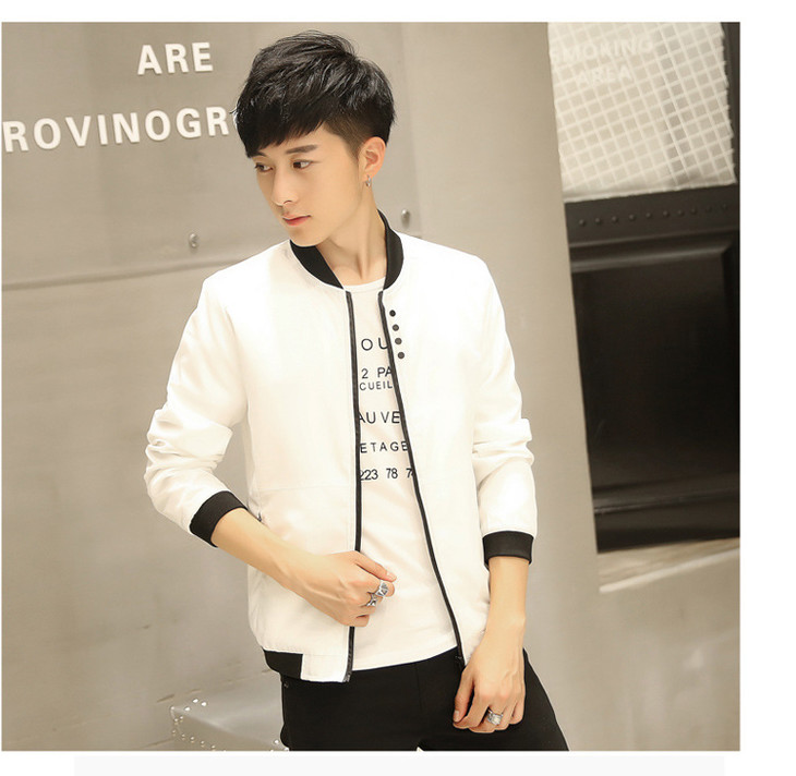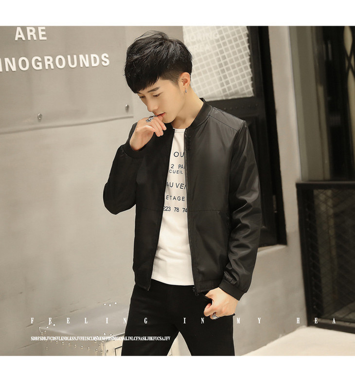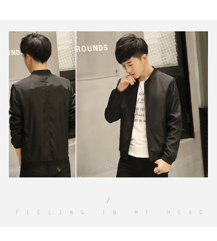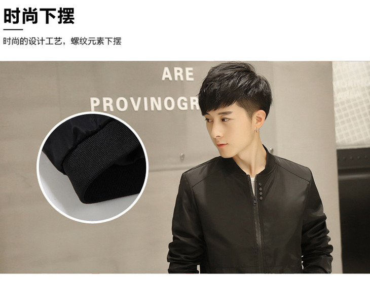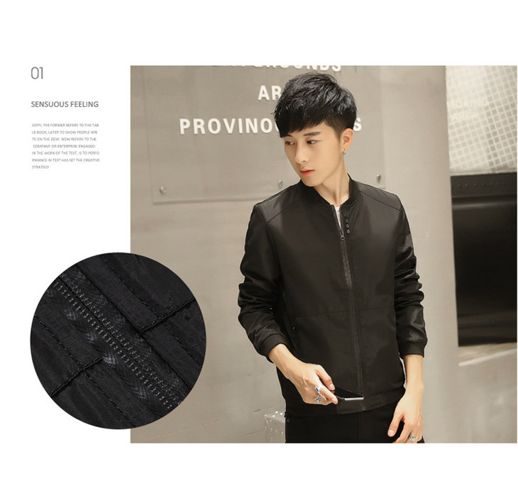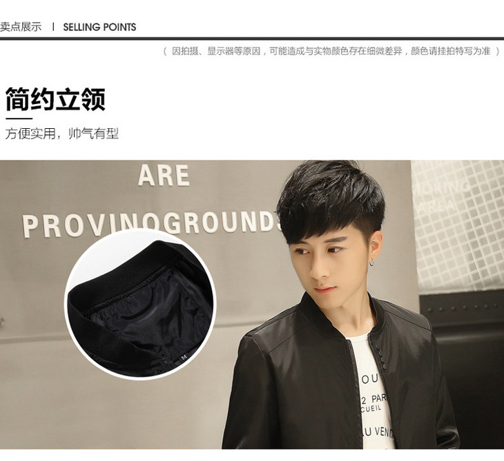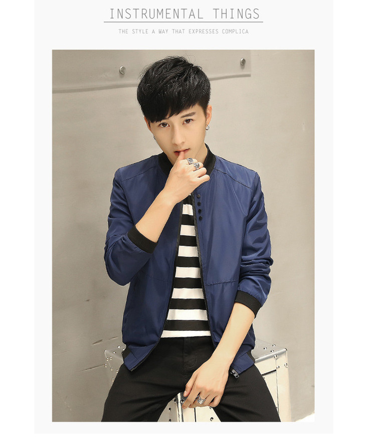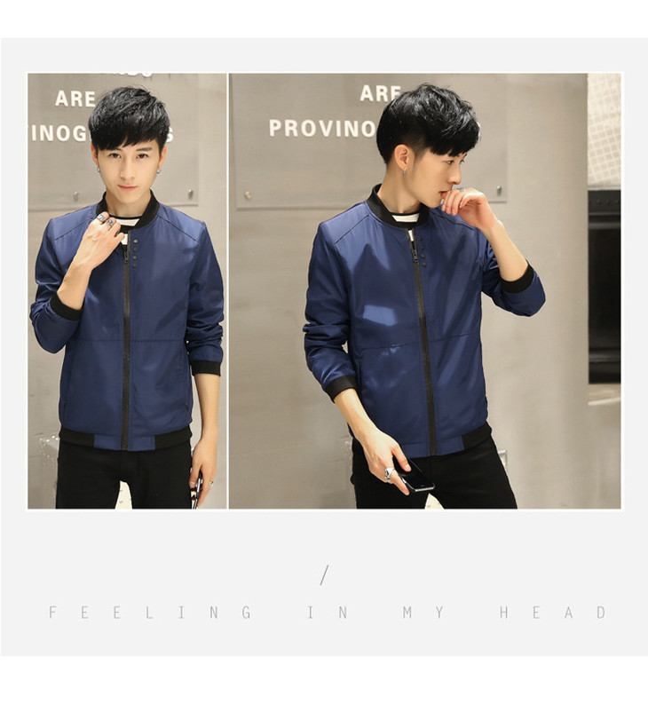 【外套男】秋季新款男式夹克纯色四排扣外套男士韩版修身简约立领男装外衣潮