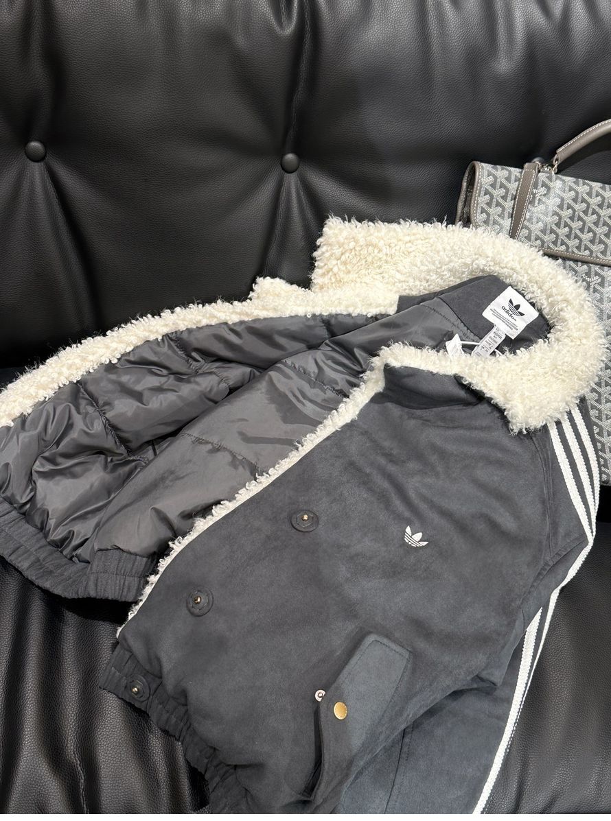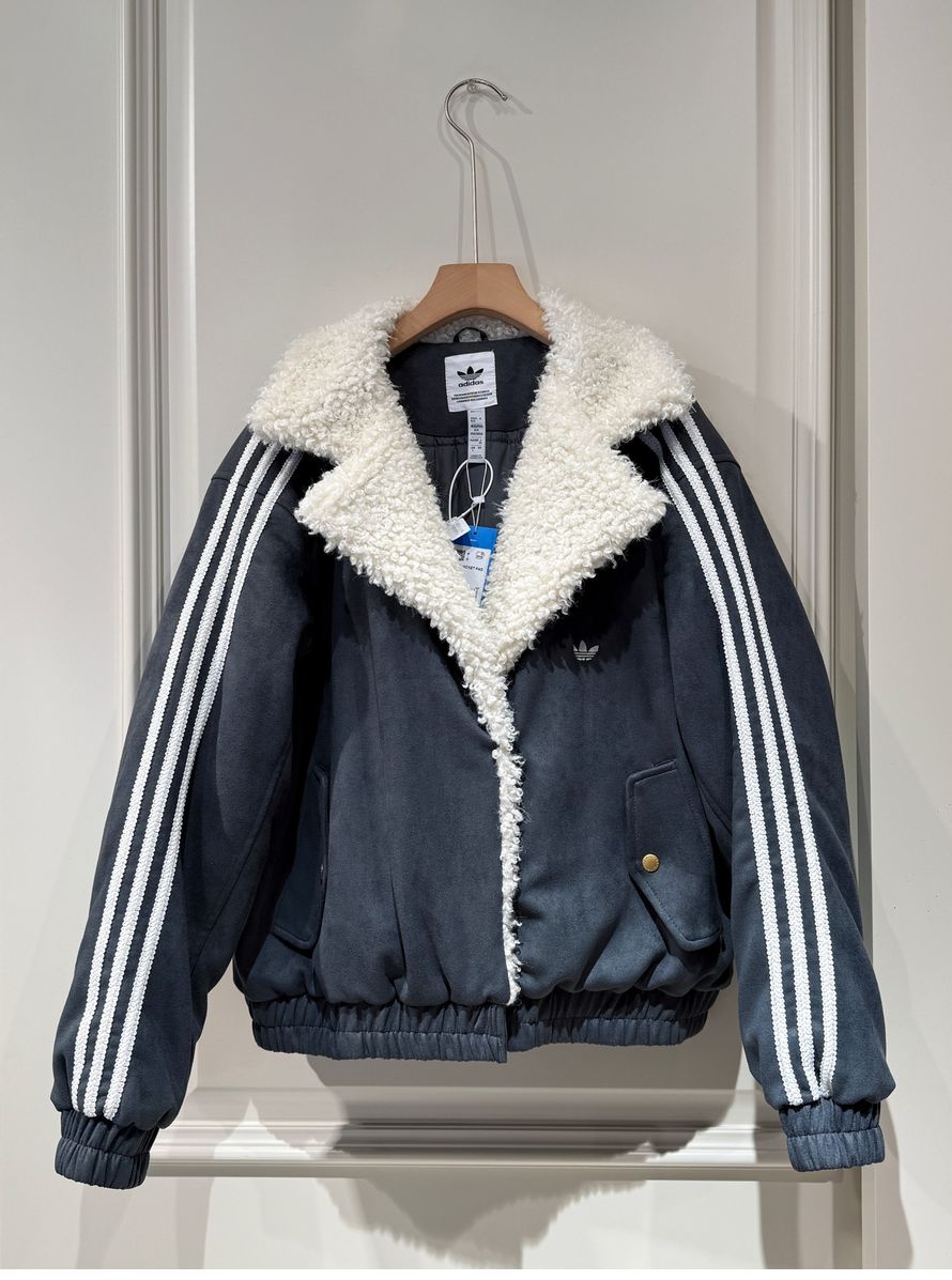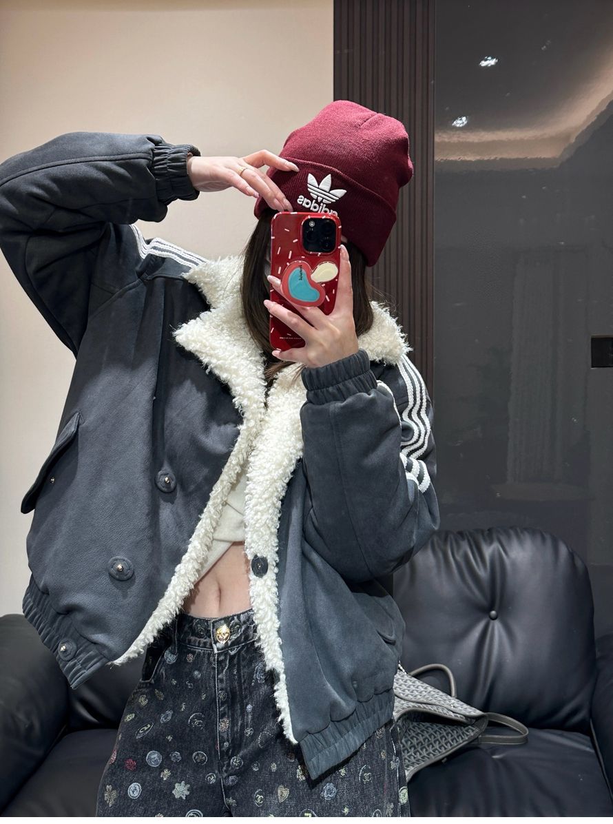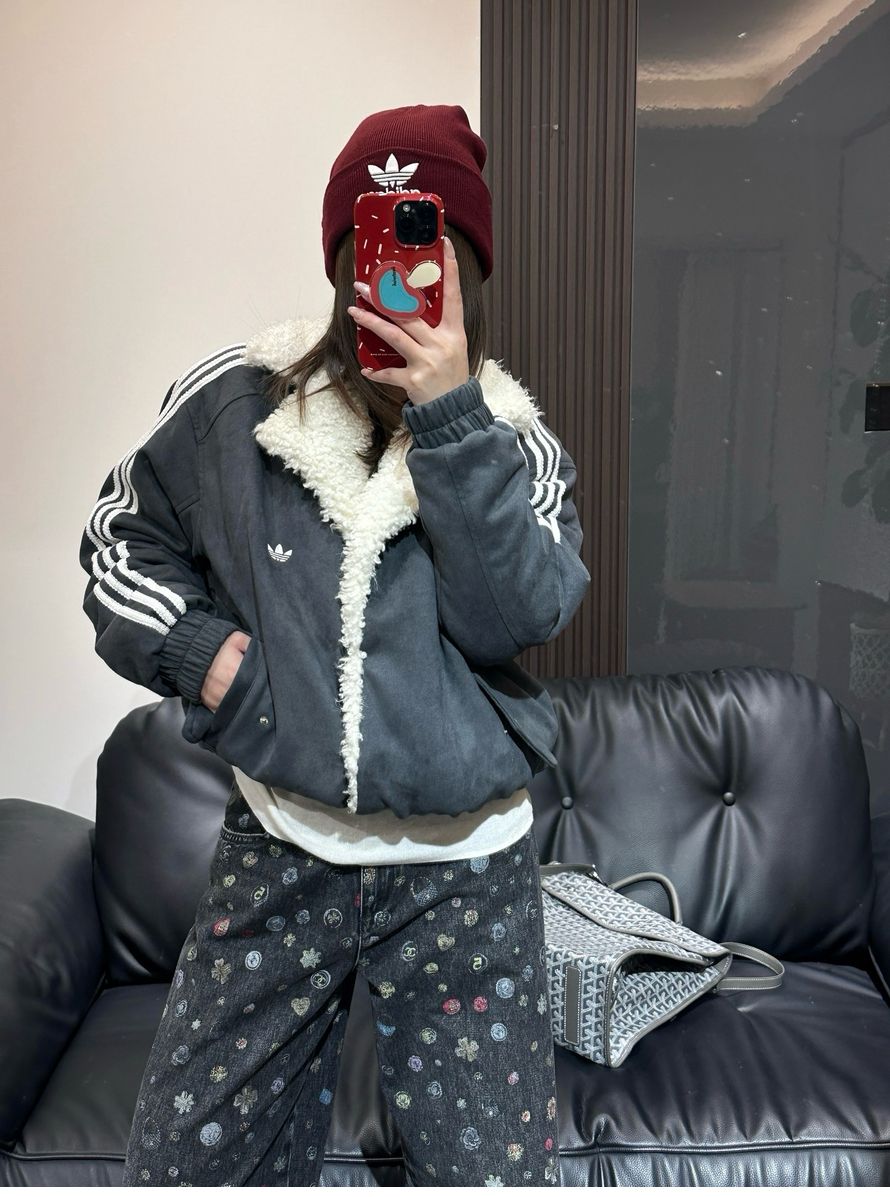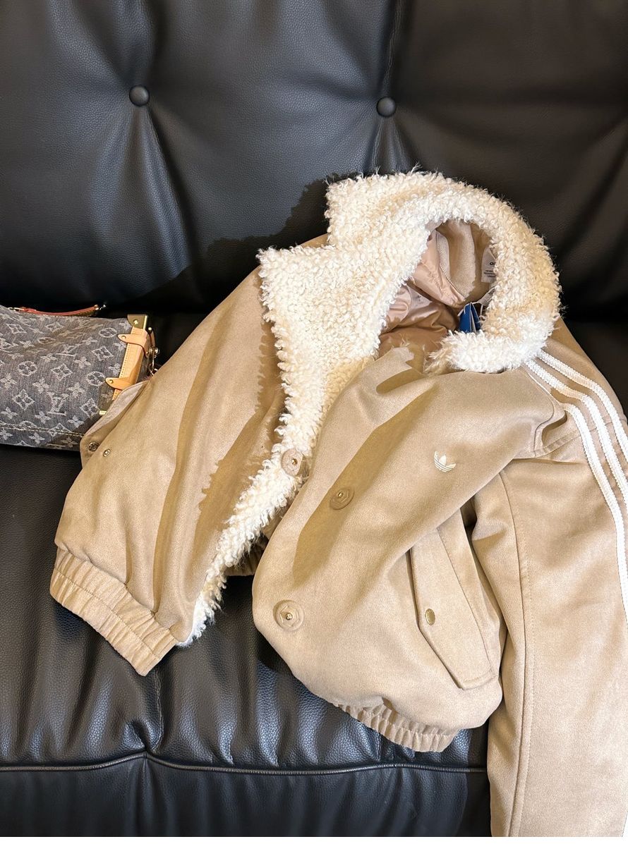 大爆款❗️阿迪蛇年限定羊羔毛外套 原版adidas,巴恩风的天花板 入冬的战袍必须是它 超轻!巨暖和!!翻领的设计更是让你整个人都很有 adida的自由不羁和个性,软乎乎的毛毛到底是谁不爱啊啊啊 情侣一起来 毕竟宋雨琦和韩维辰的审美不可置疑哈哈哈哈,说实话这样兼顾时髦和保暖性的羊羔毛错过就真的错过了,两个颜色都超高级,不用犹豫抓住机会 最最最好看的三叶草☘️ 🔺🔺重点看面料 迪子最最最拿得出手的一件运动棉服,它考虑到了方方面面,贯穿整个冬天是完全完全ok的 和市面上那些不一样 首先就是外层 94.5%涤纶混纺5.5%氨纶,实际上就是麂皮绒 全都是客供的胚布需要定染 颜色巨巨正!!我们的面料表面覆盖着一层0.2mm绒毛,具有很好的手感。抚摸着带阻尼,柔韧有挺性 其次内衬是完全不起静电的,很亲肤很糯。 领口部分是骆驼绒,蓬松保暖而且完全不扎。 ⚠️关于尺码 𝐗𝐬 𝐬 𝐦 𝐥 三个码数,可以穿到150斤