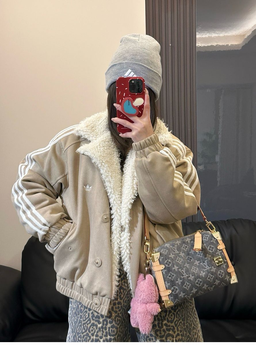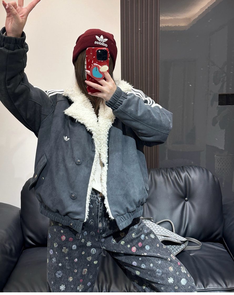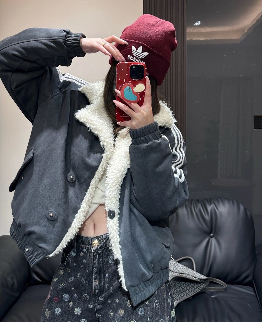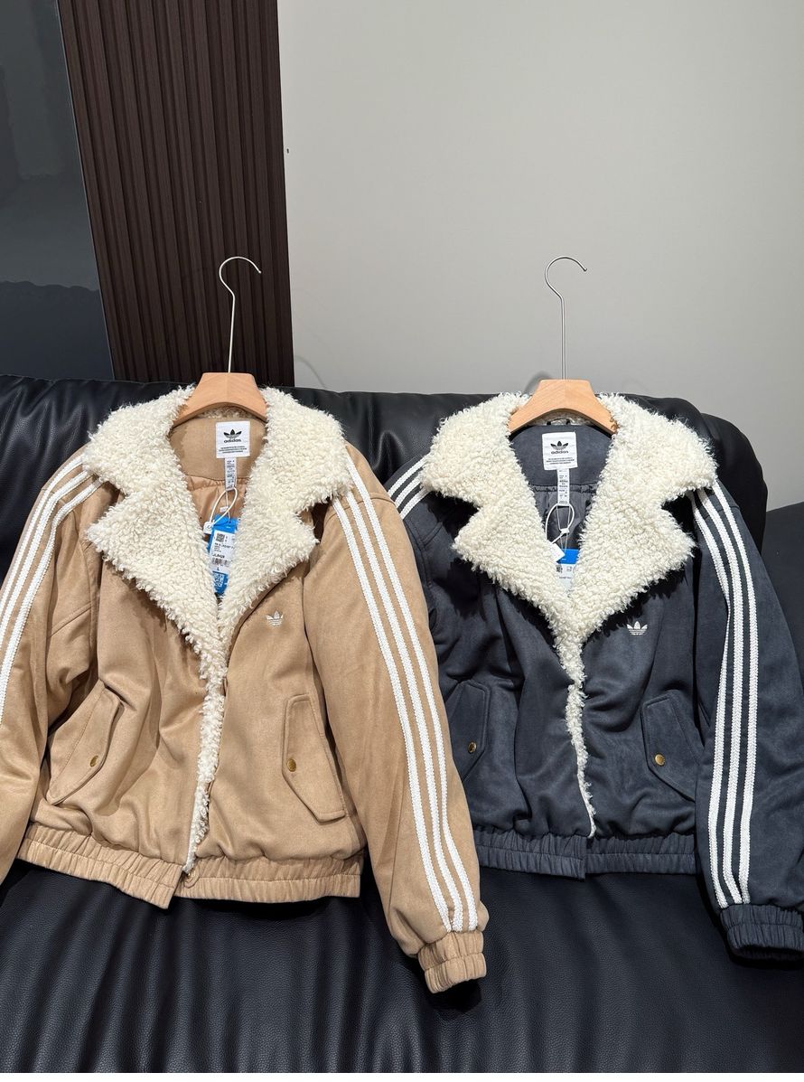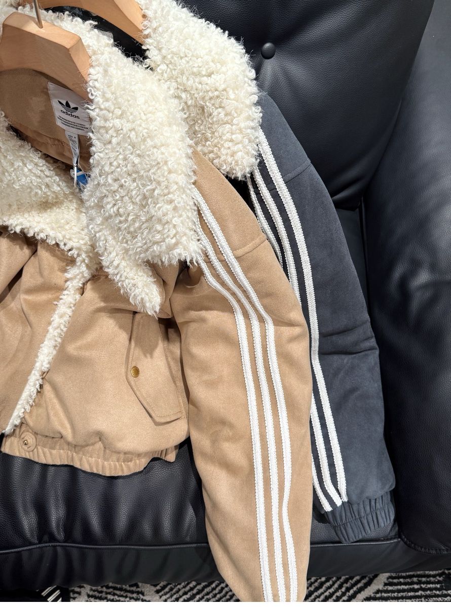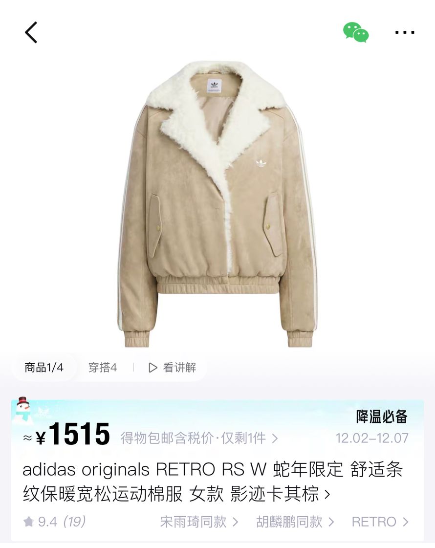 大爆款❗️阿迪蛇年限定羊羔毛外套 原版adidas,巴恩风的天花板 入冬的战袍必须是它 超轻!巨暖和!!翻领的设计更是让你整个人都很有 adida的自由不羁和个性,软乎乎的毛毛到底是谁不爱啊啊啊 情侣一起来 毕竟宋雨琦和韩维辰的审美不可置疑哈哈哈哈,说实话这样兼顾时髦和保暖性的羊羔毛错过就真的错过了,两个颜色都超高级,不用犹豫抓住机会 最最最好看的三叶草☘️ 🔺🔺重点看面料 迪子最最最拿得出手的一件运动棉服,它考虑到了方方面面,贯穿整个冬天是完全完全ok的 和市面上那些不一样 首先就是外层 94.5%涤纶混纺5.5%氨纶,实际上就是麂皮绒 全都是客供的胚布需要定染 颜色巨巨正!!我们的面料表面覆盖着一层0.2mm绒毛,具有很好的手感。抚摸着带阻尼,柔韧有挺性 其次内衬是完全不起静电的,很亲肤很糯。 领口部分是骆驼绒,蓬松保暖而且完全不扎。 ⚠️关于尺码 𝐗𝐬 𝐬 𝐦 𝐥 三个码数,可以穿到150斤