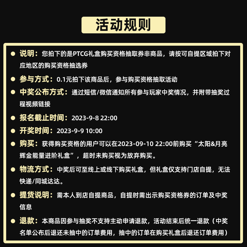 【龙岩地区专拍·购买资格抽选券】宝可梦 PTCG 集换式卡牌 太阳&月亮 辉金能量进阶礼盒购买资格抽取券