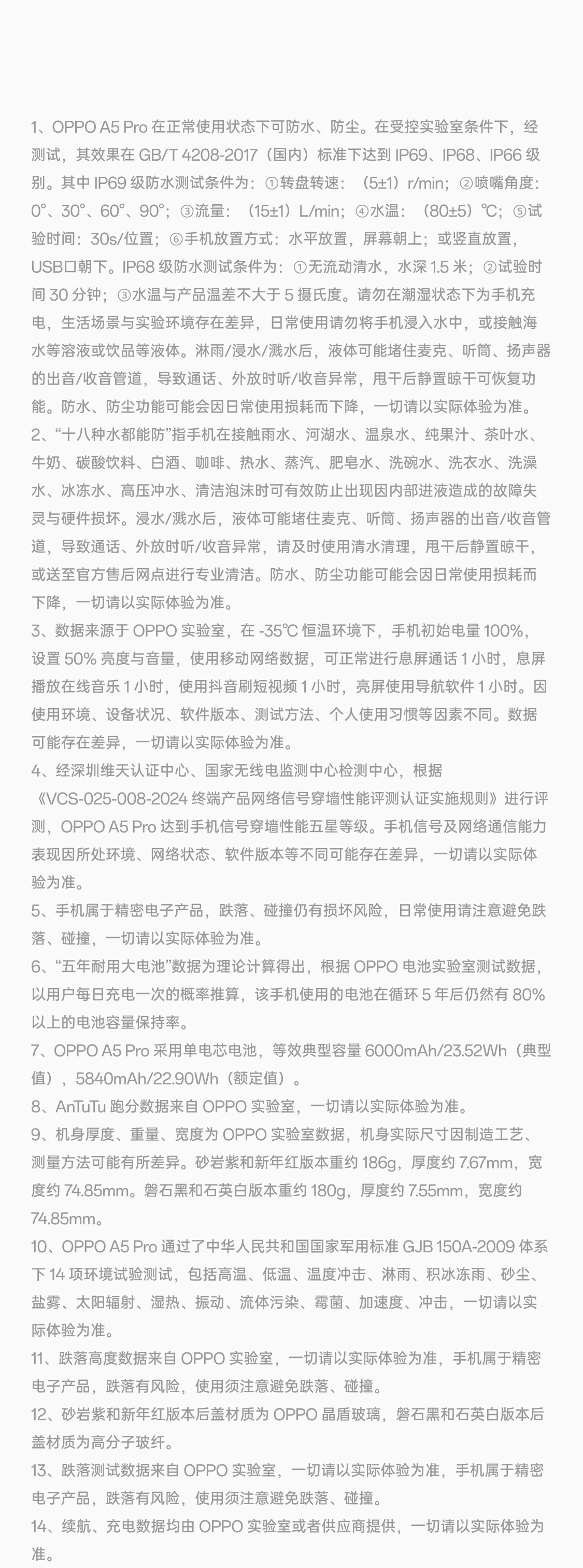 OPPO A5 Pro 满级防水2.0 耐严苛环境 信号穿墙王 360°抗摔 6000mAh大电池 5G手机